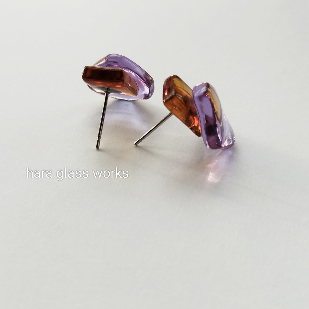 【色変化】○□ガラス キャメル&ラベンダー アレルギー対応ピアス/イヤリング選択