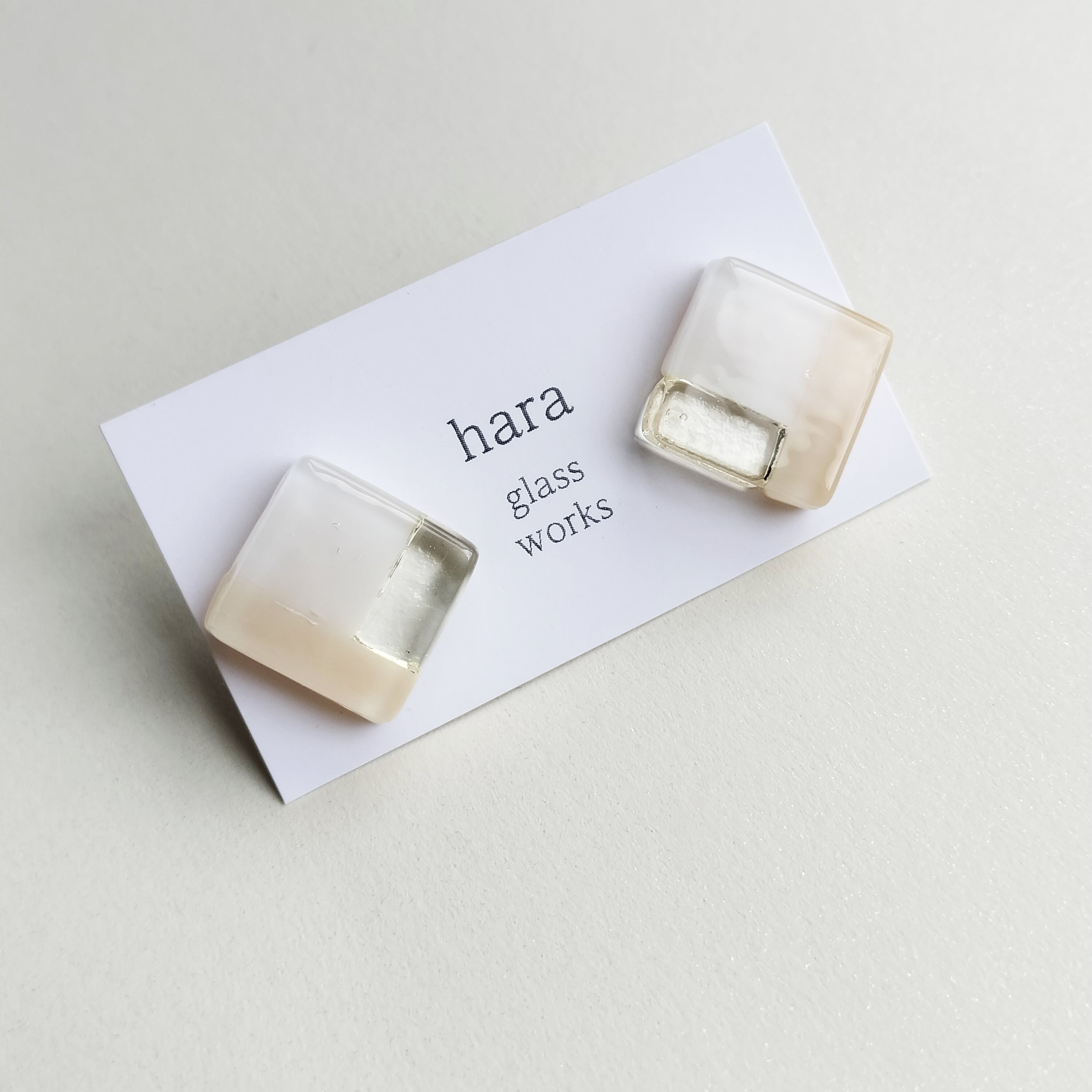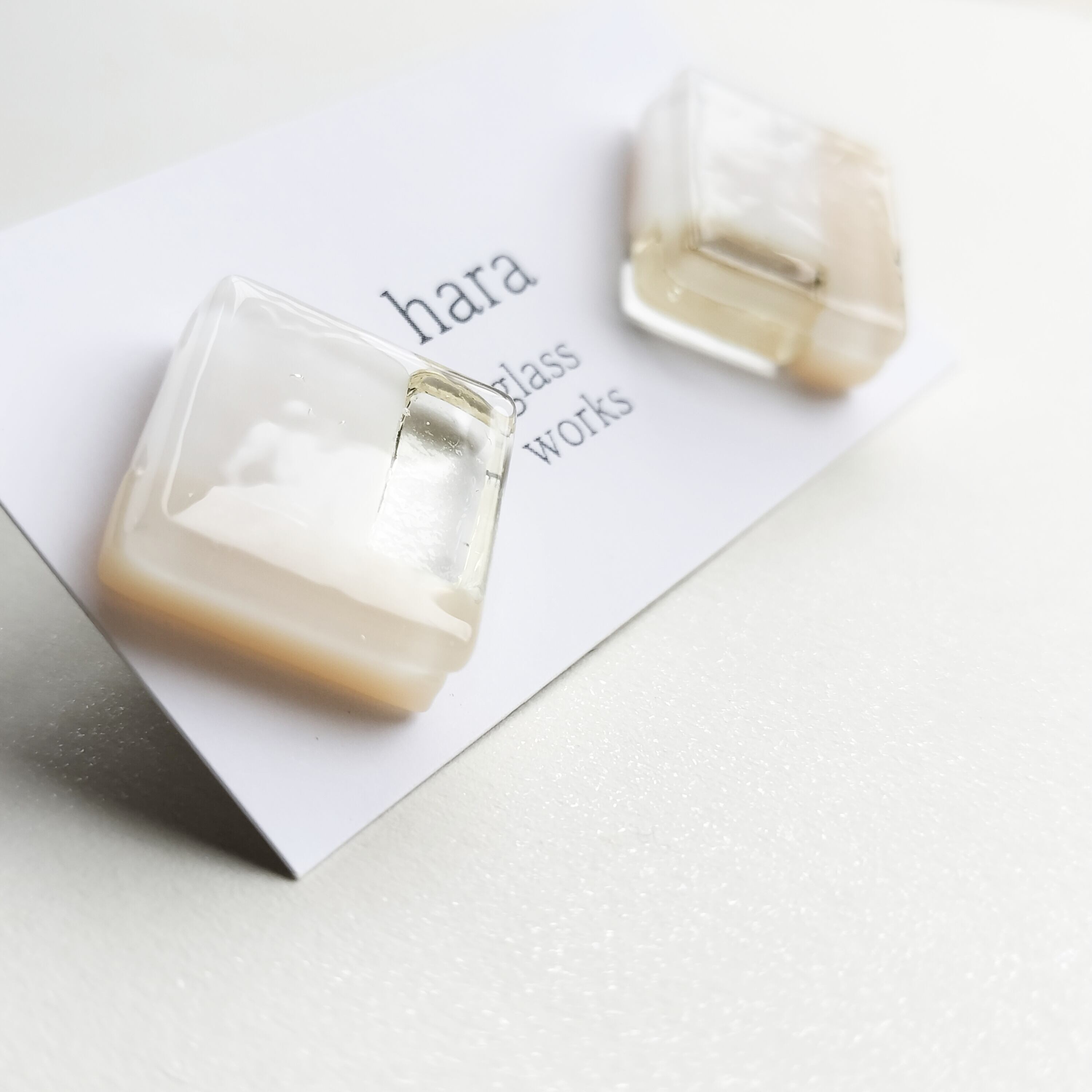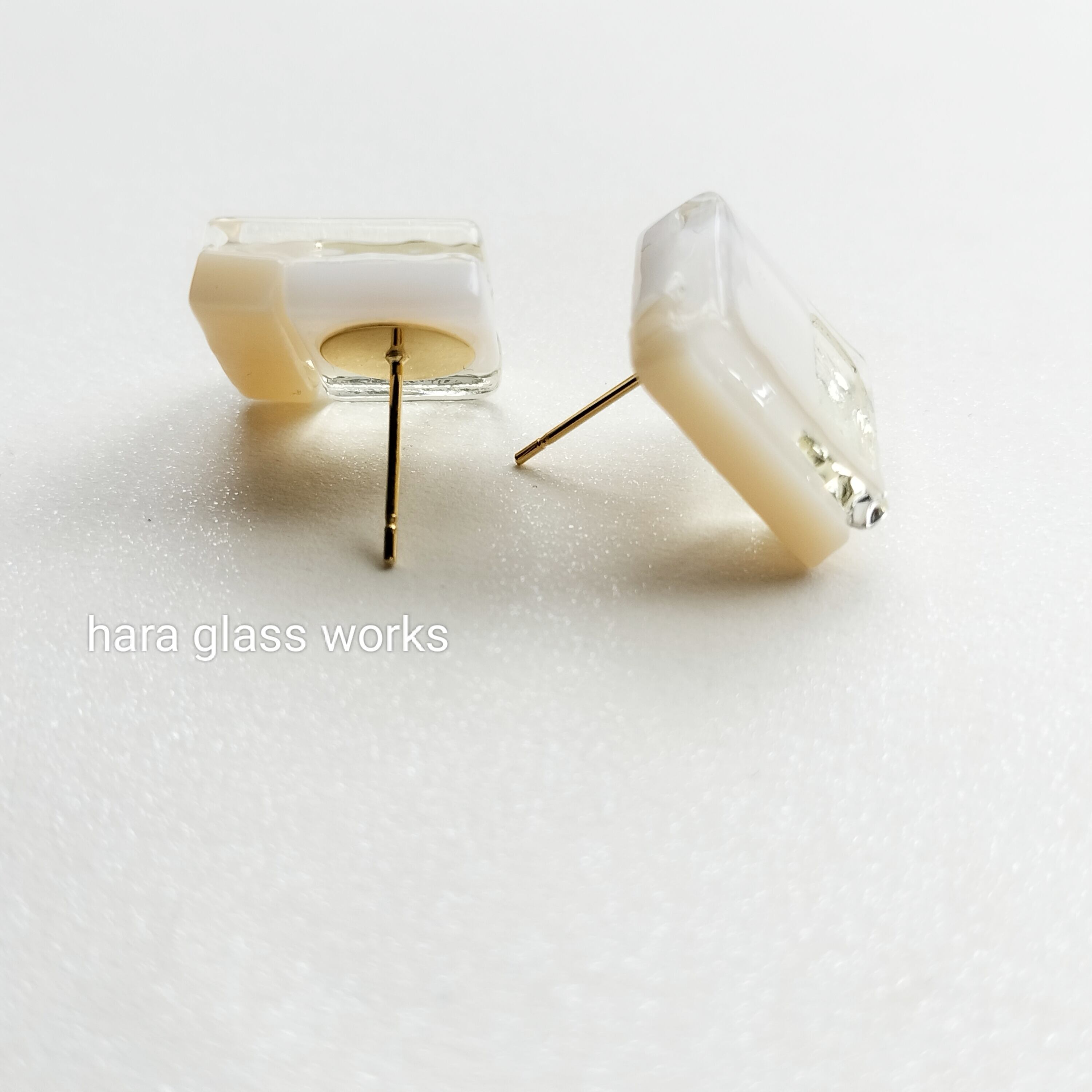 トリコロールのスクエアガラス マジパン&ホワイト&ペールイエロー(ピアス/イヤリング選択)
