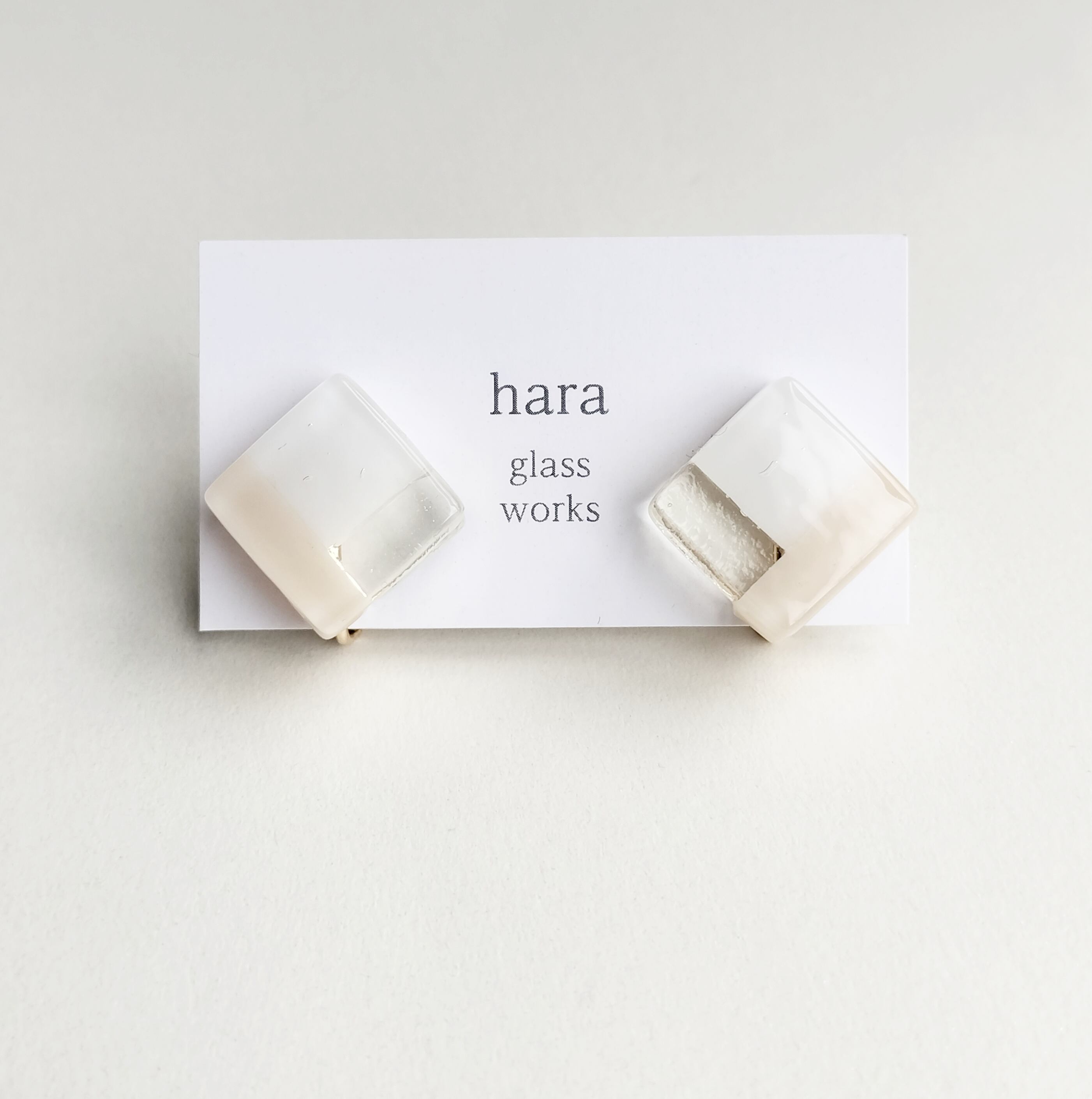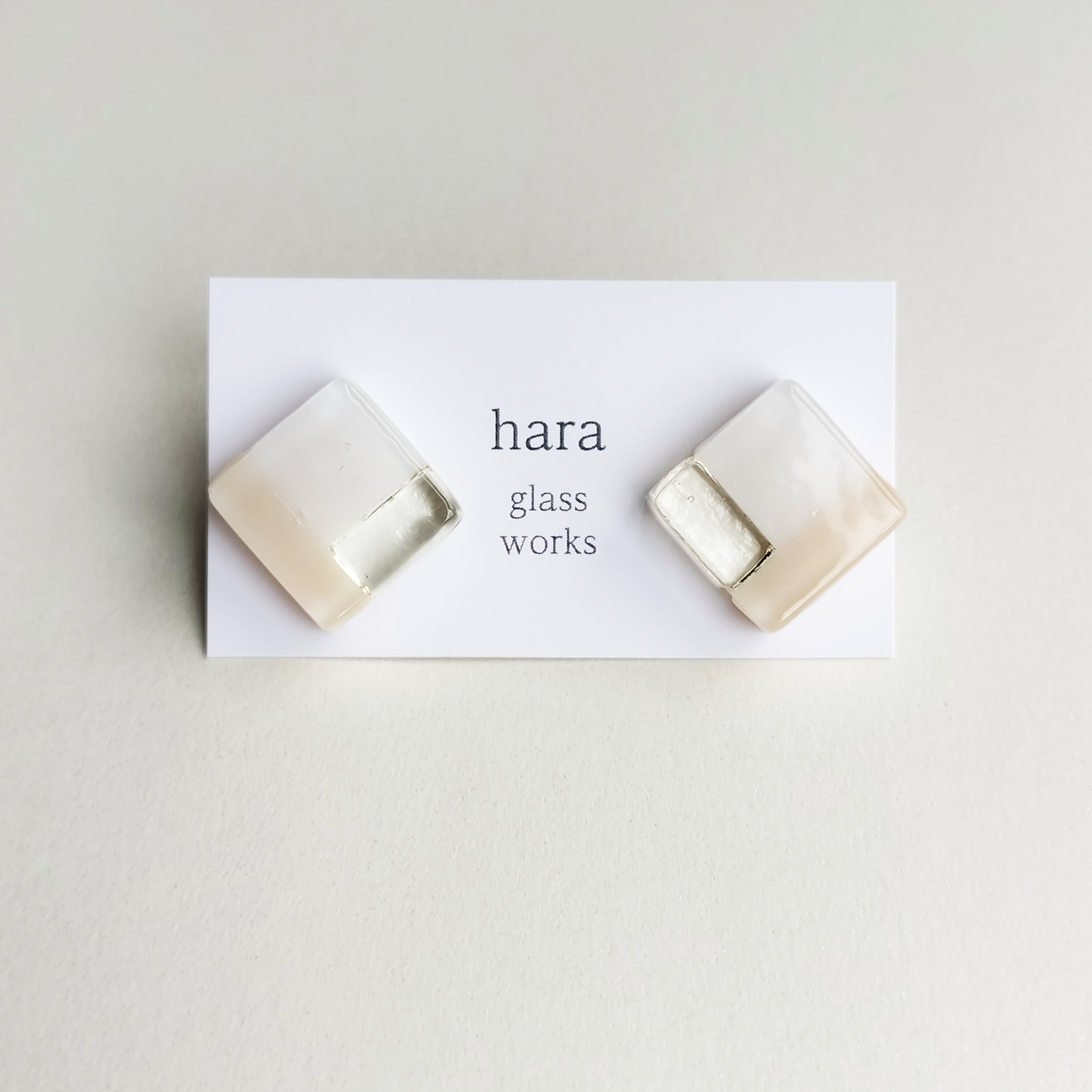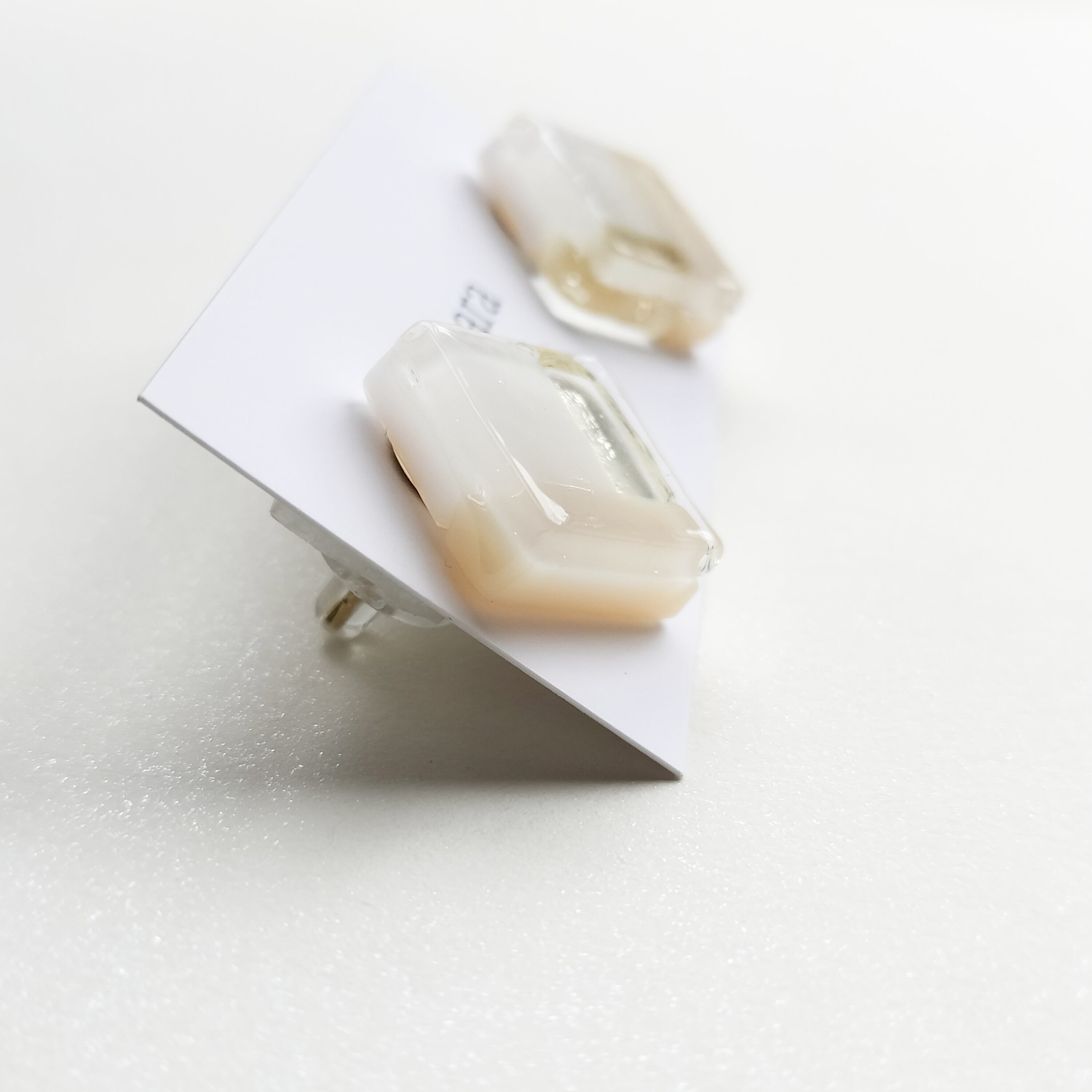 トリコロールのスクエアガラス マジパン&ホワイト&ペールイエロー(ピアス/イヤリング選択)