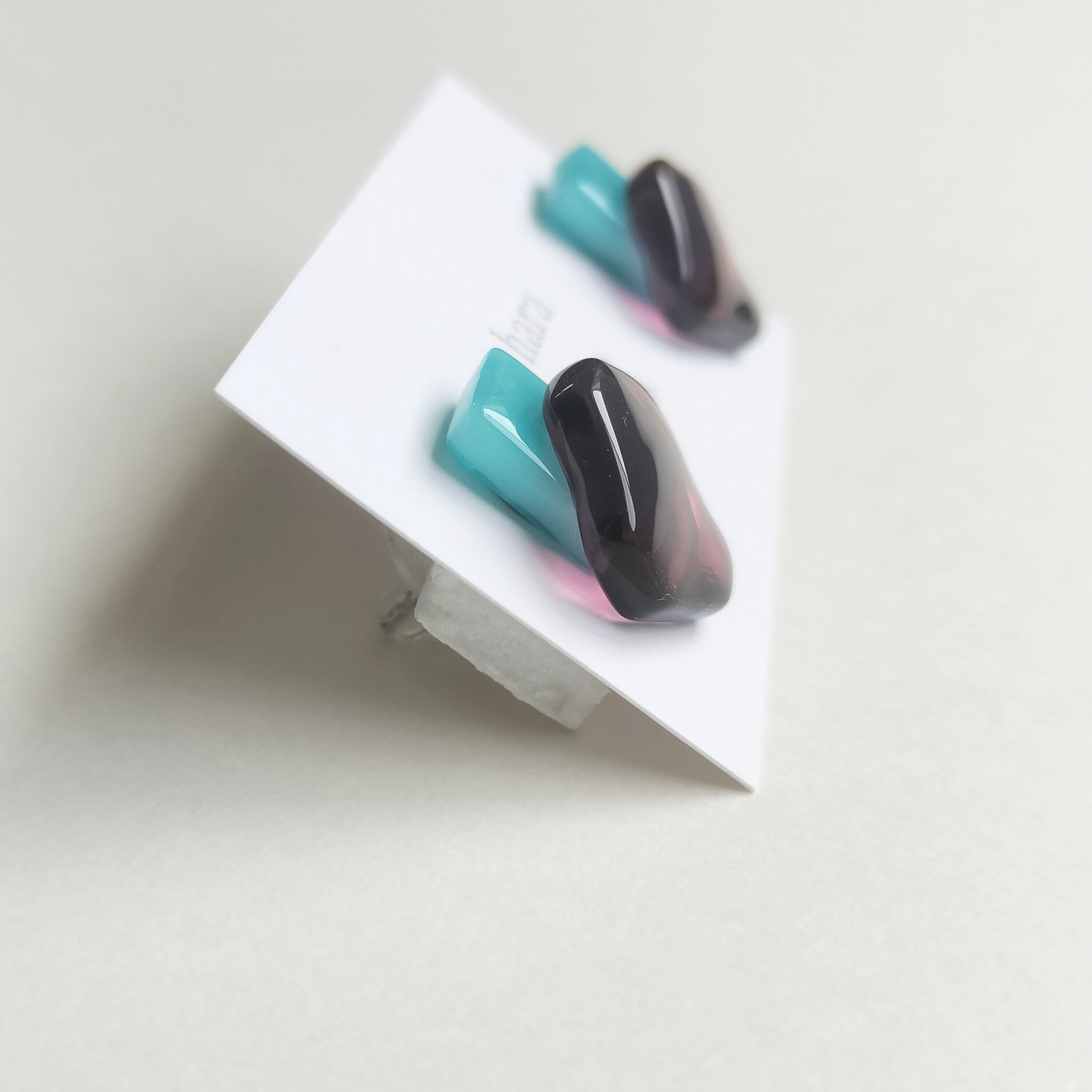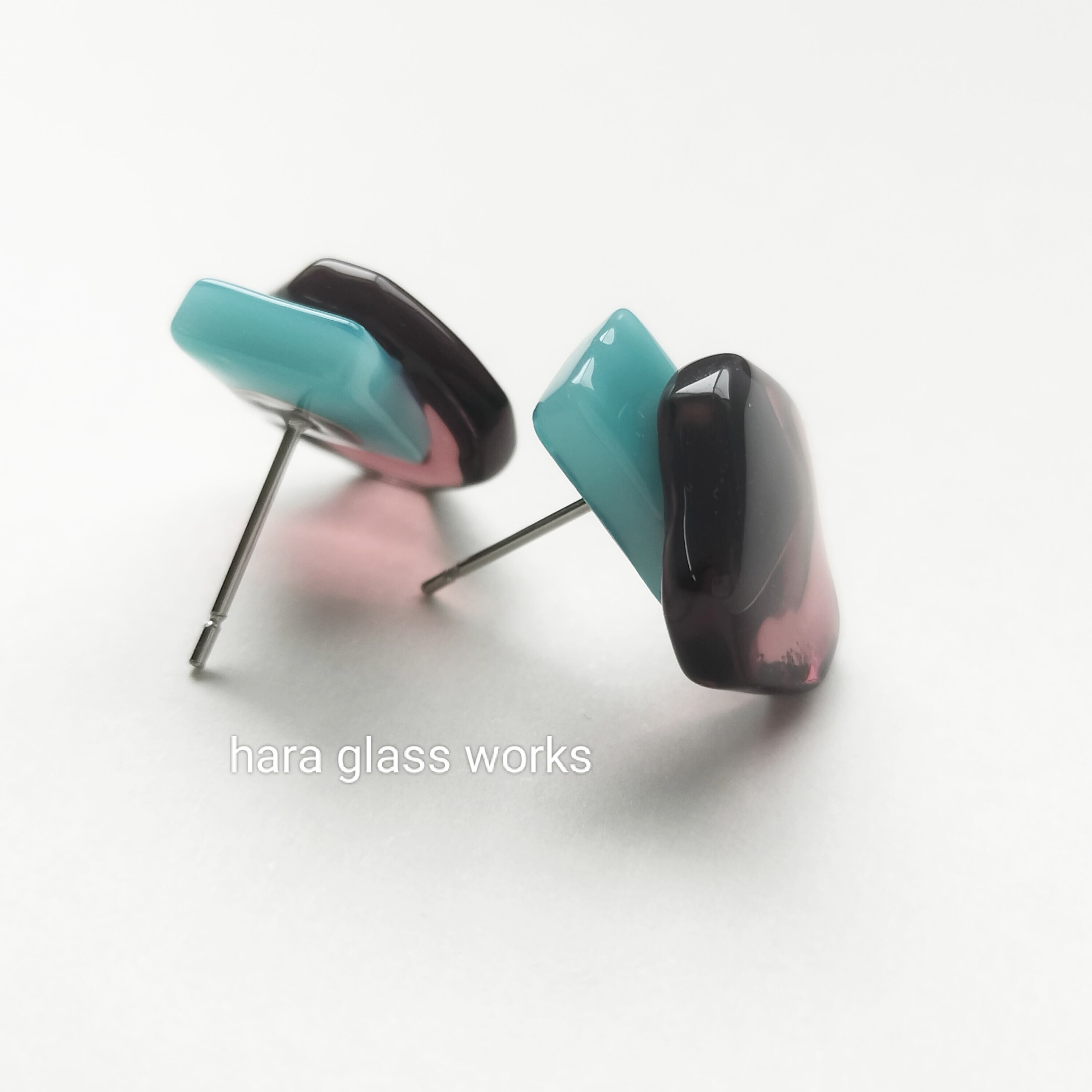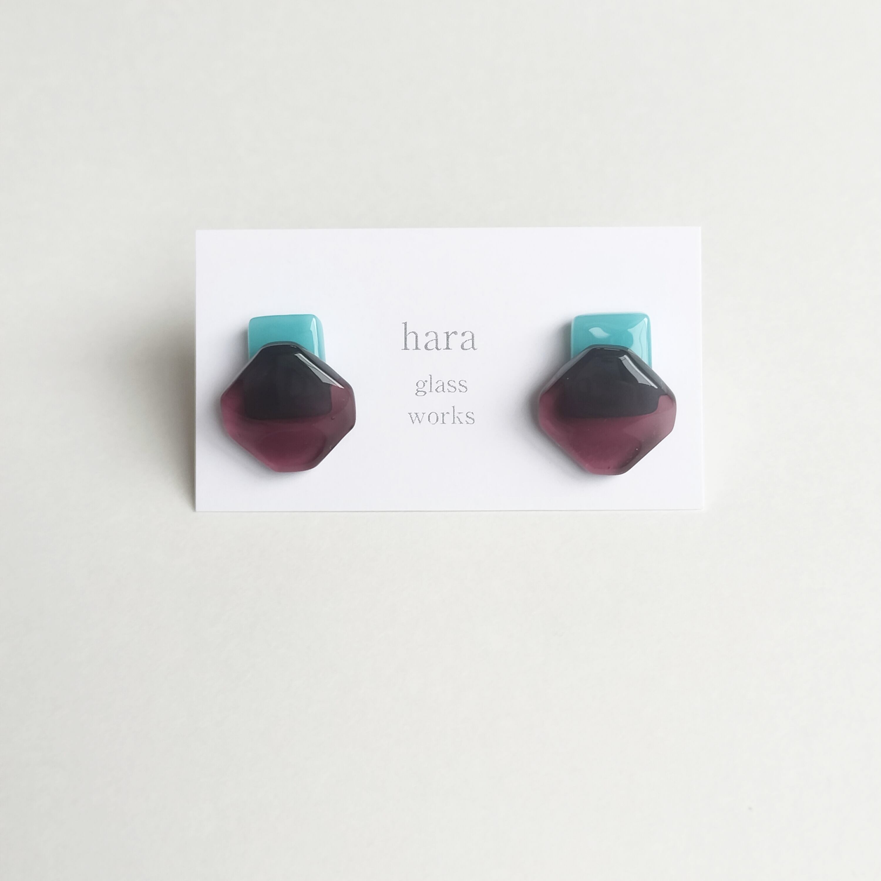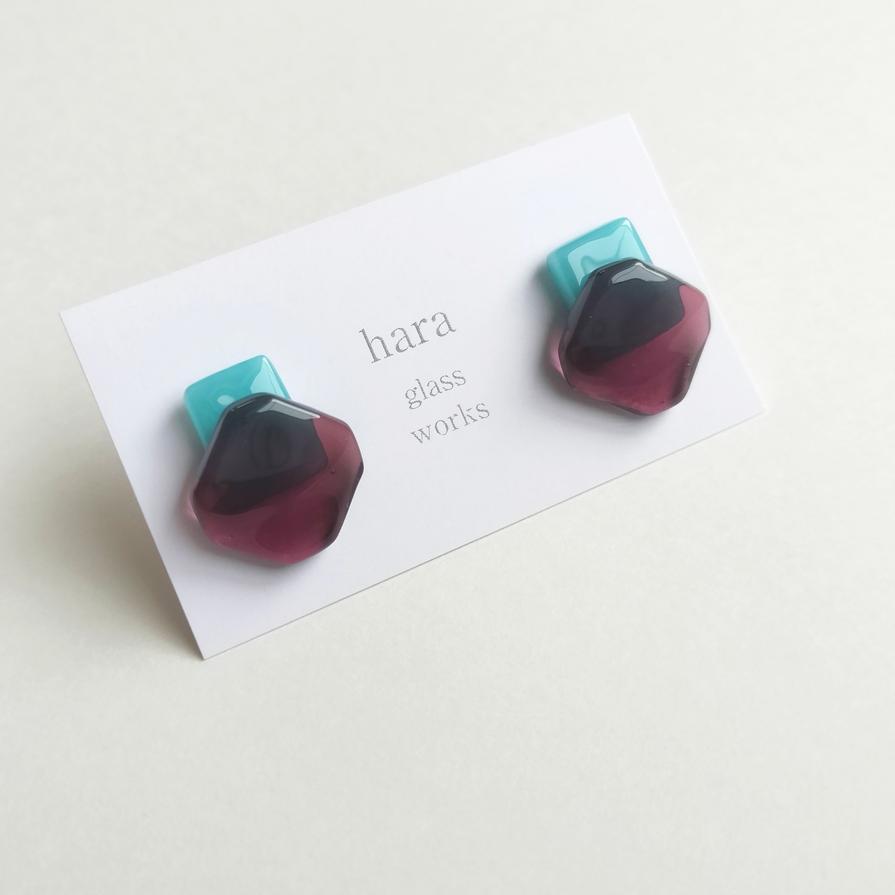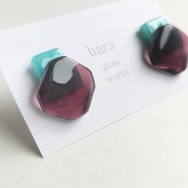 ○□ガラスピアス プラム&ターコイズブルー アレルギー対応ピアス/イヤリング選択