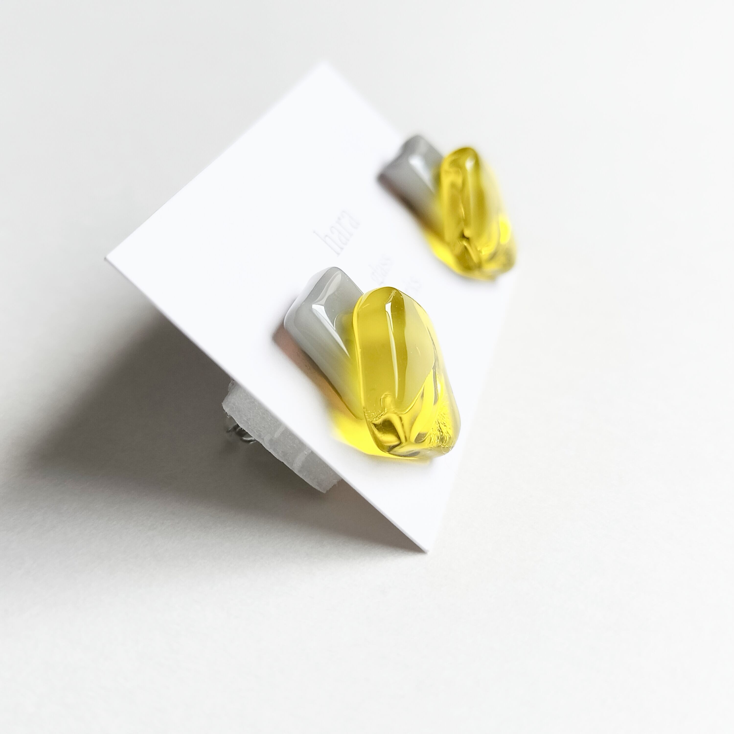 ○□ガラス イエロー&グレー アレルギー対応ピアス/イヤリング選択