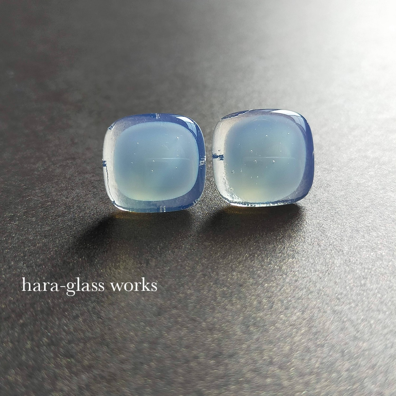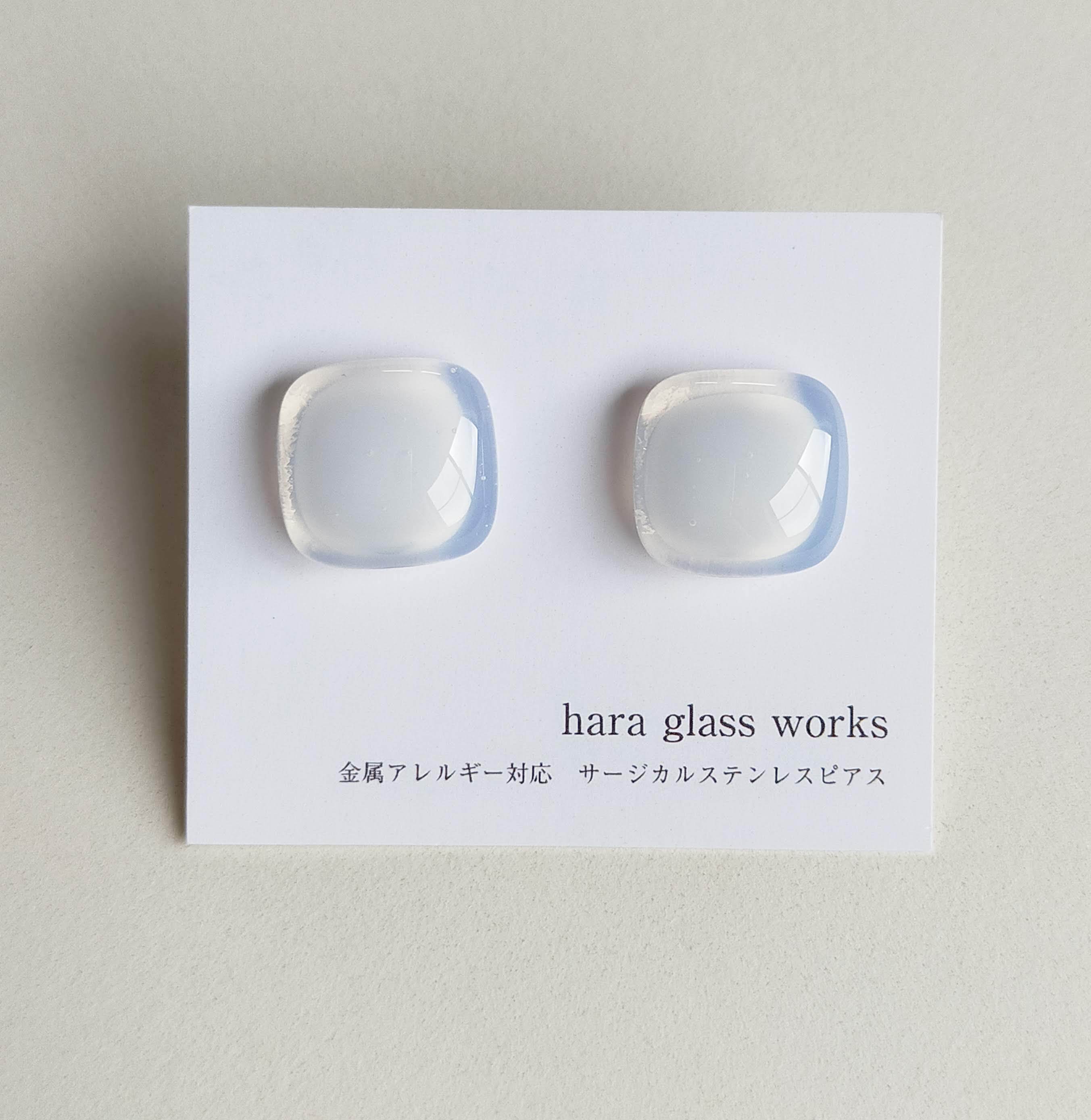 ふんわりスクエアのガラスアクセサリー ミルキー(乳白色) アレルギー対応ピアス/イヤリング選択