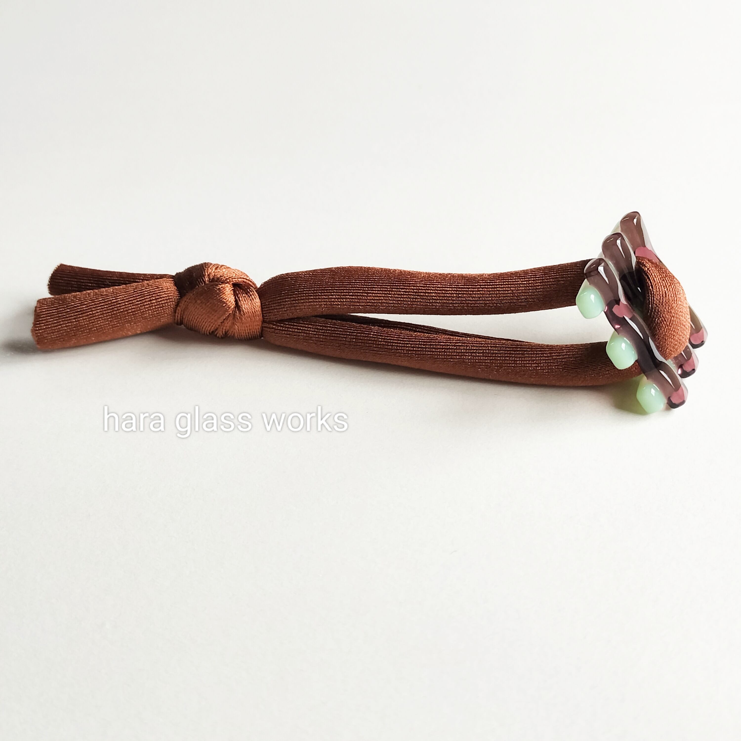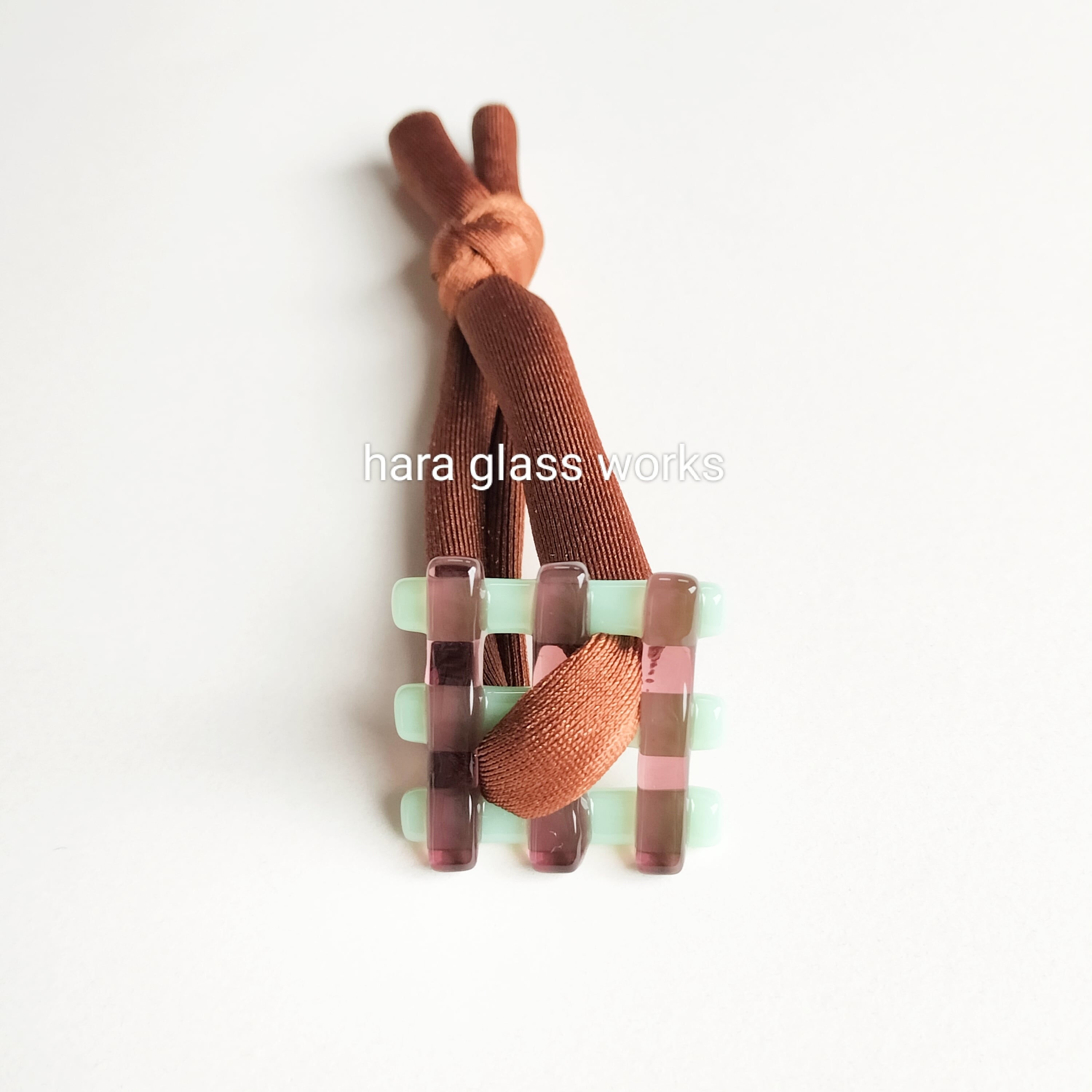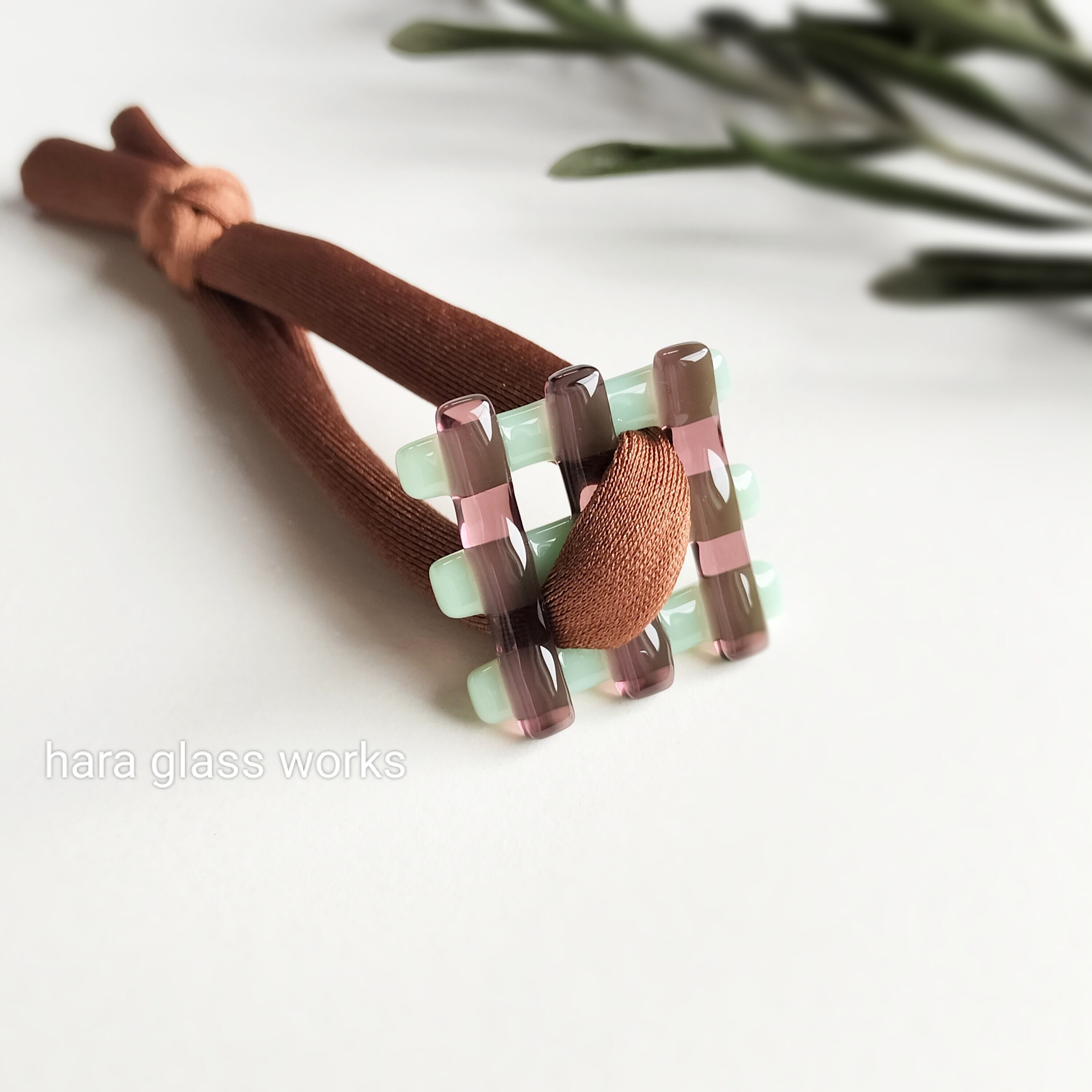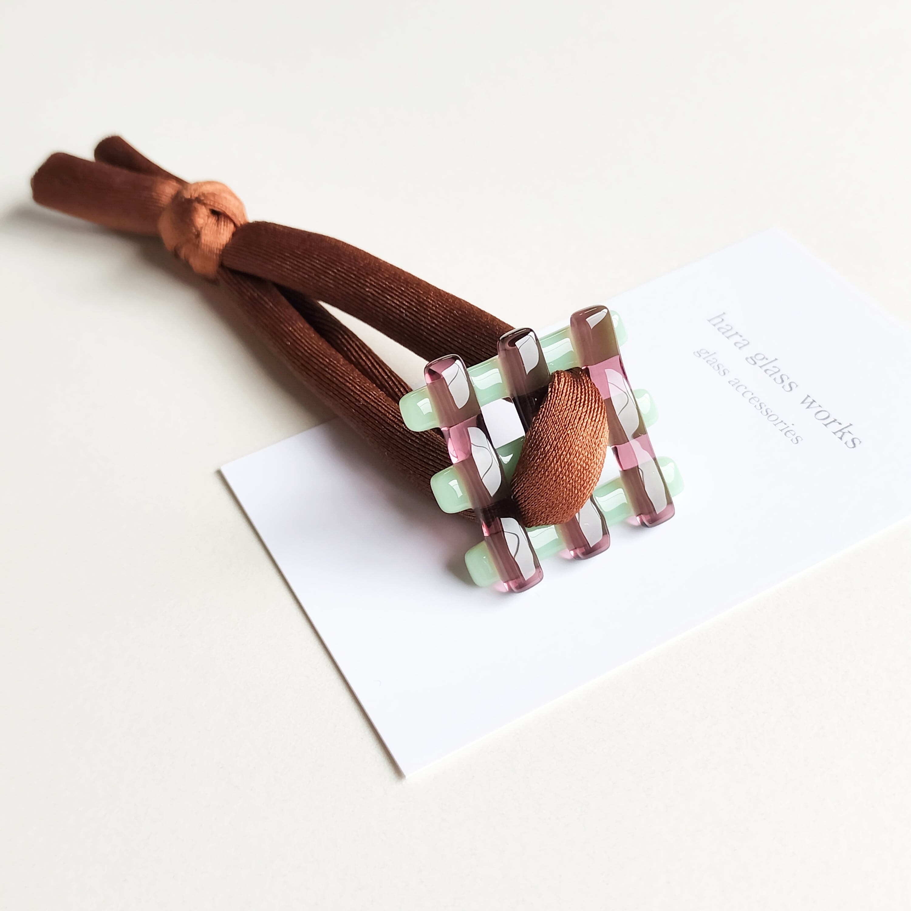 チェックガラスのヘアゴム プラム&ミントグリーン(ブラウン)