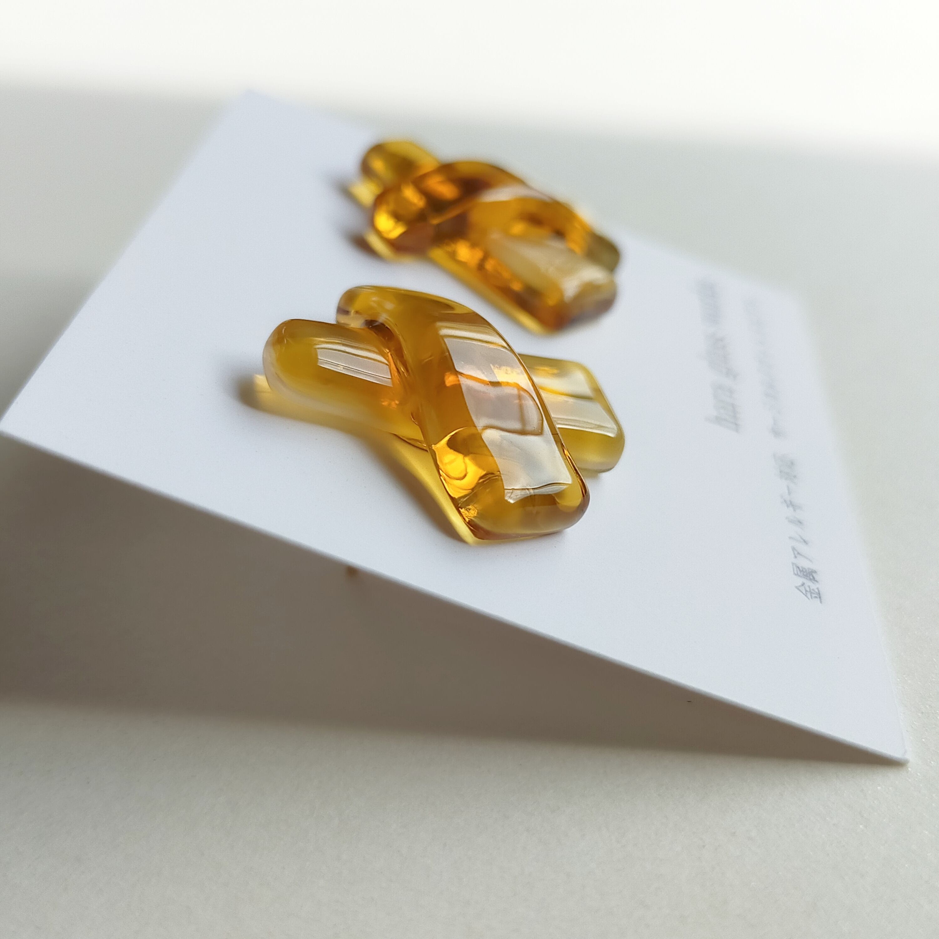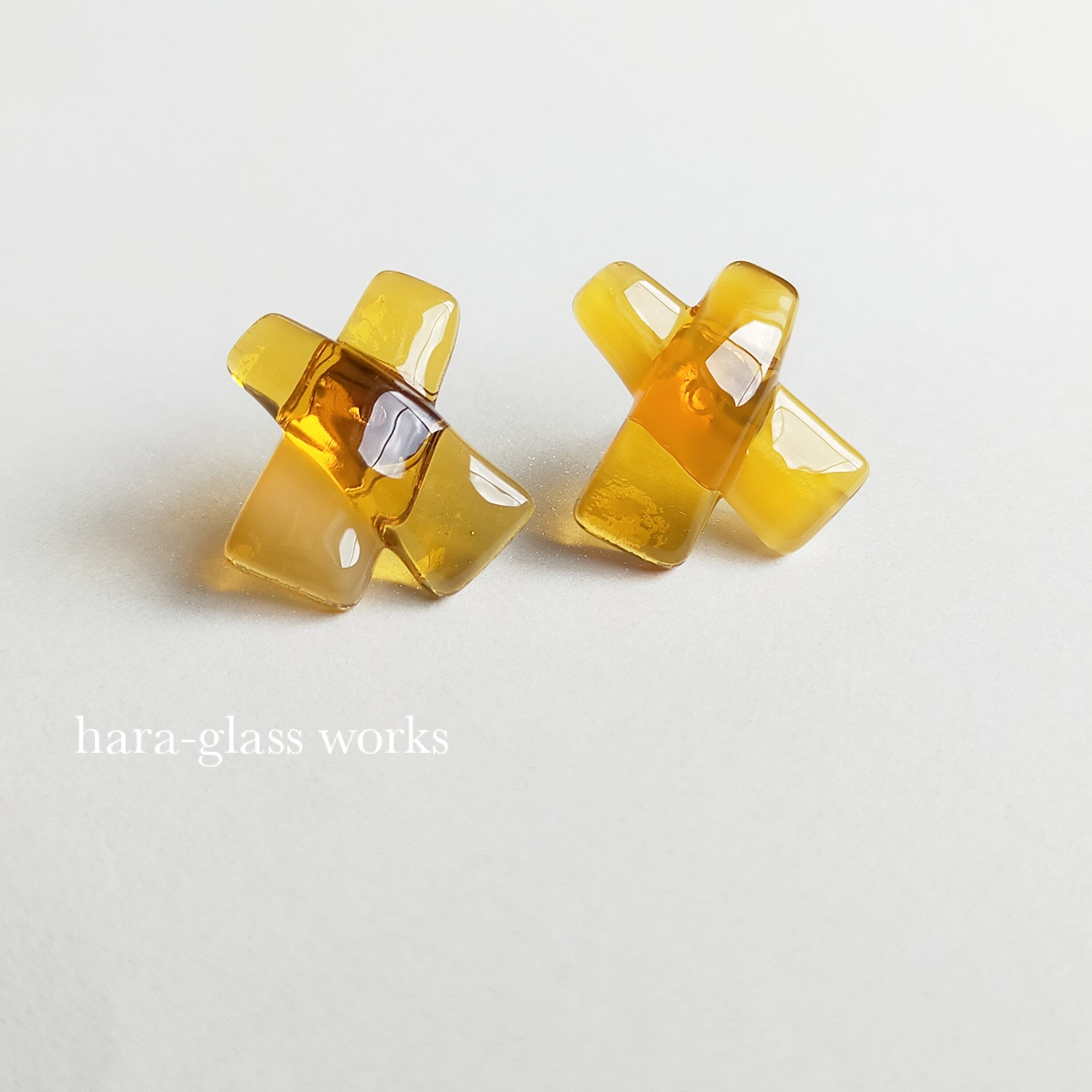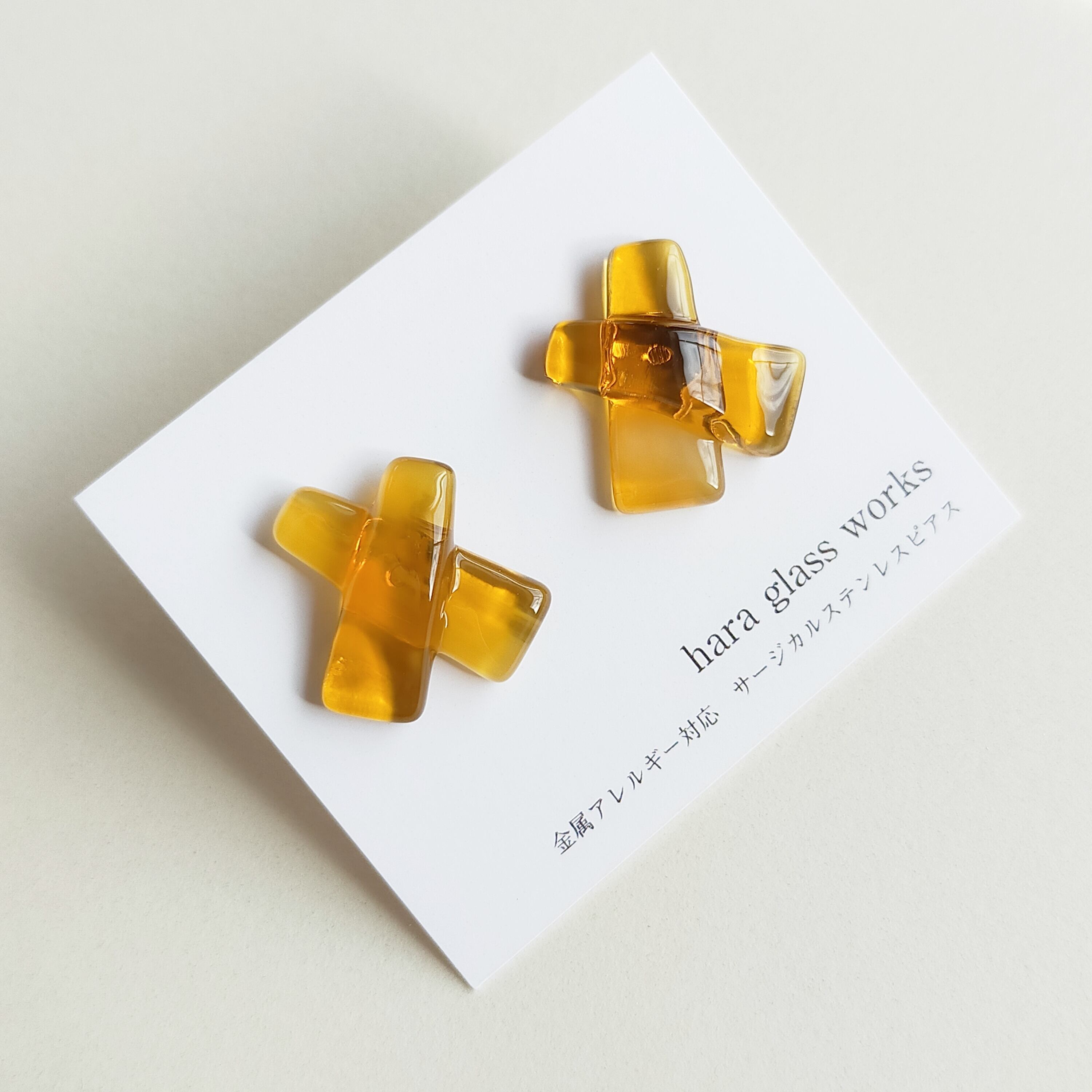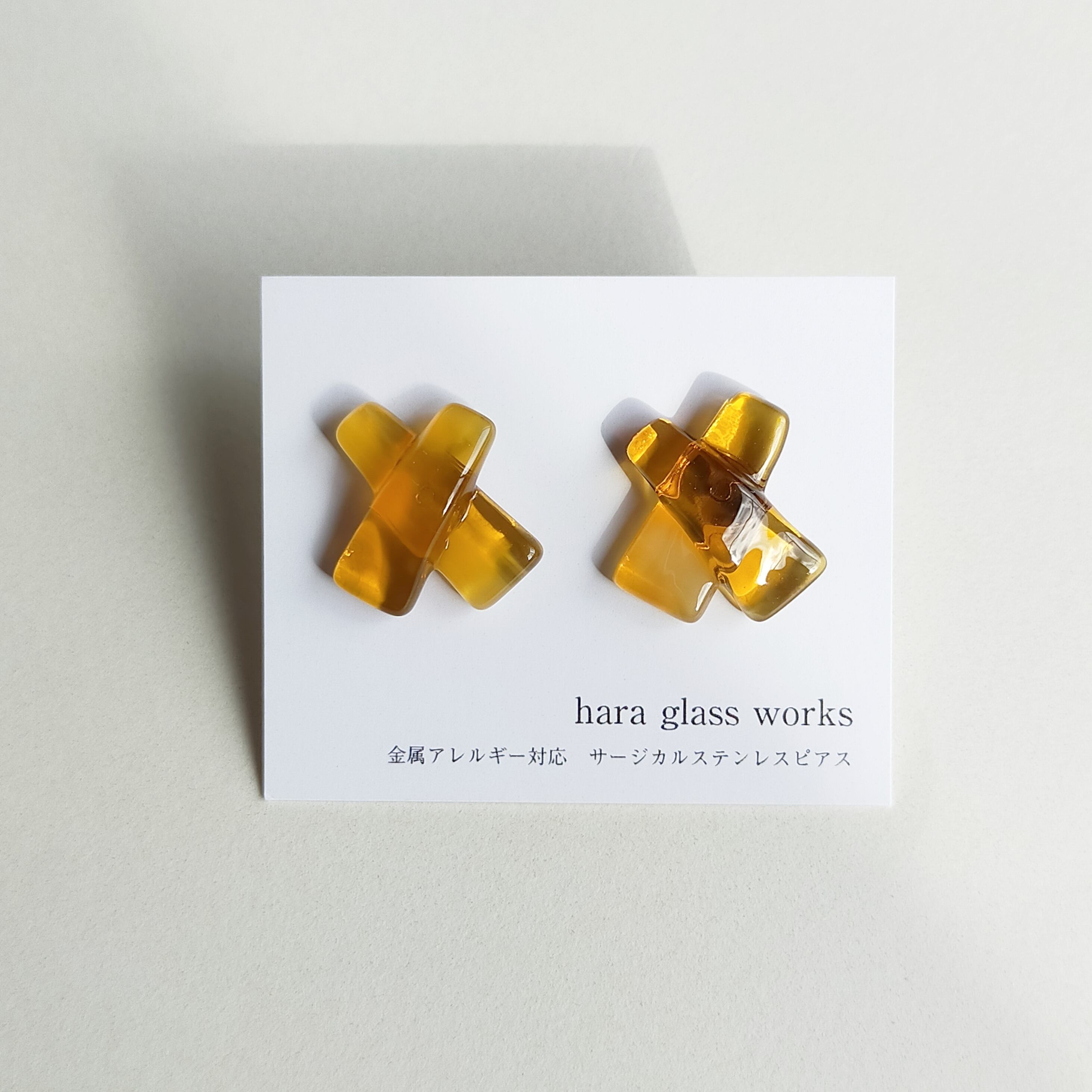 ガラスのXピアス キャメル&ホワイトのグラデーション アレルギー対応ピアス