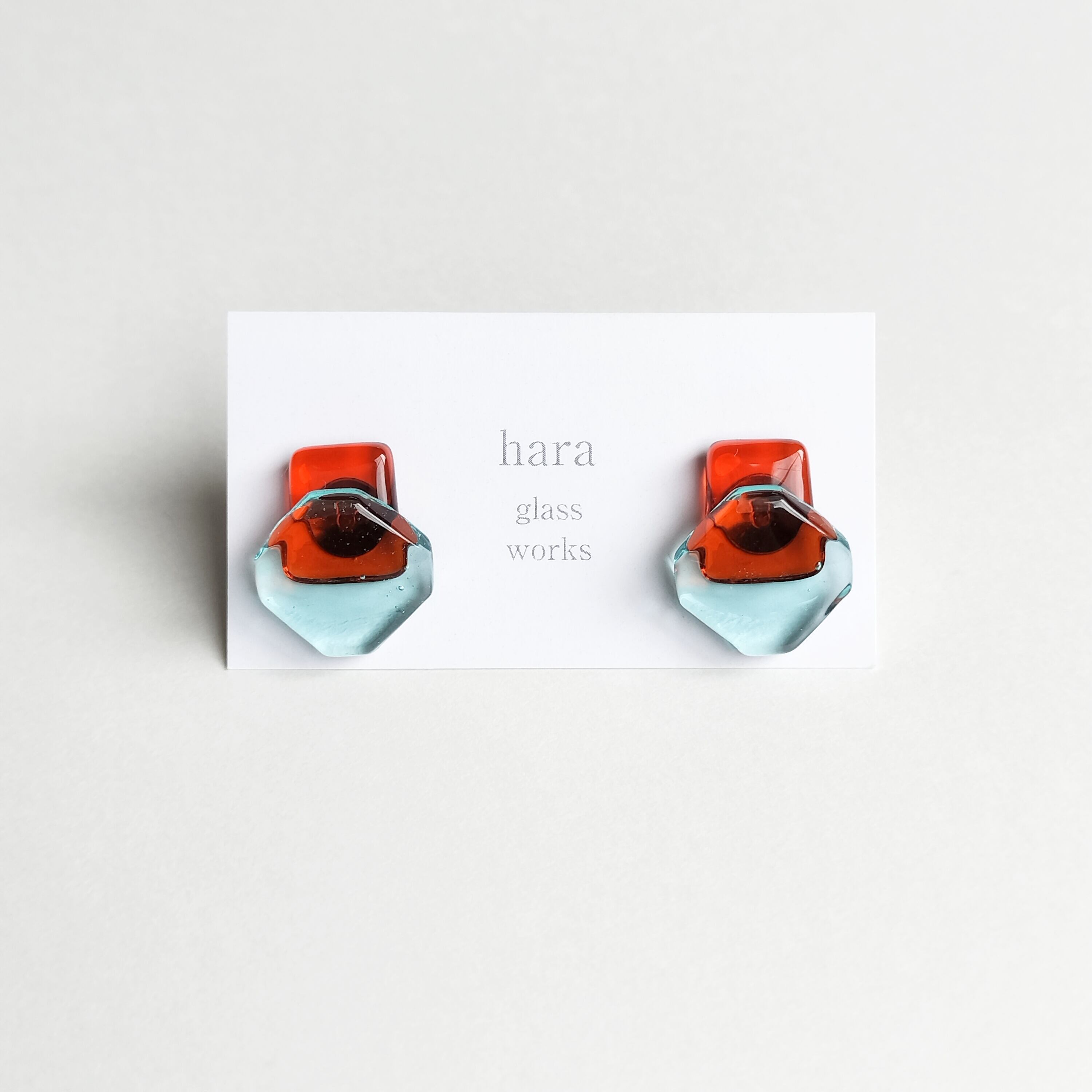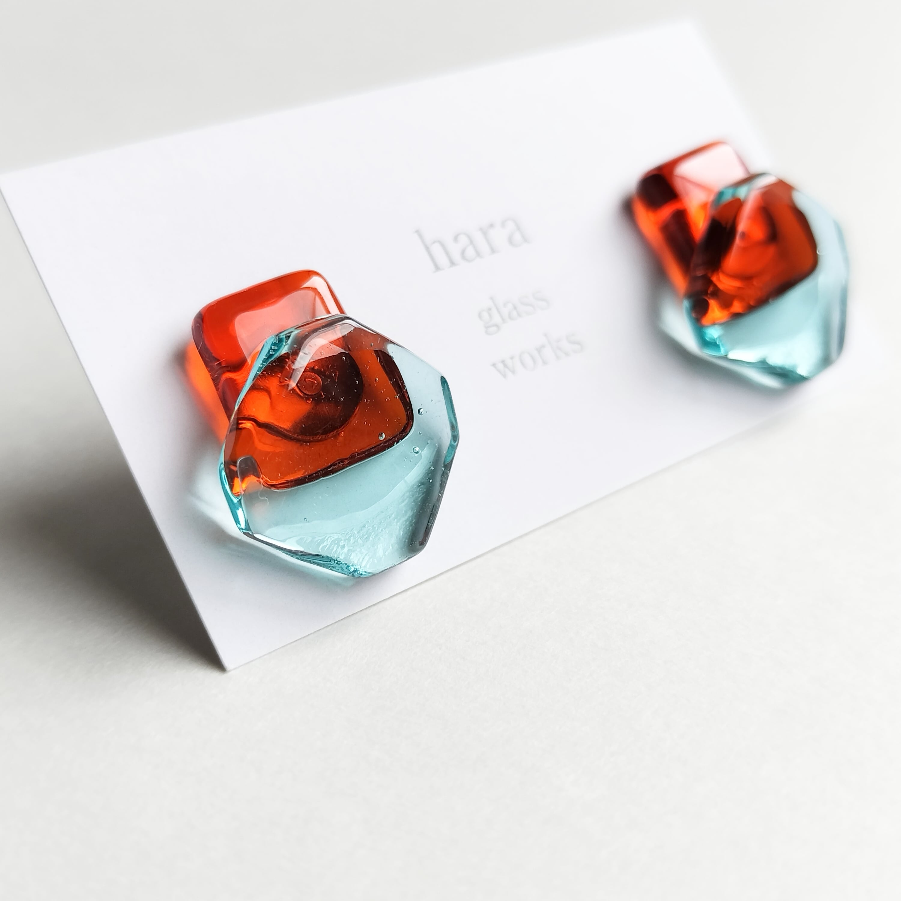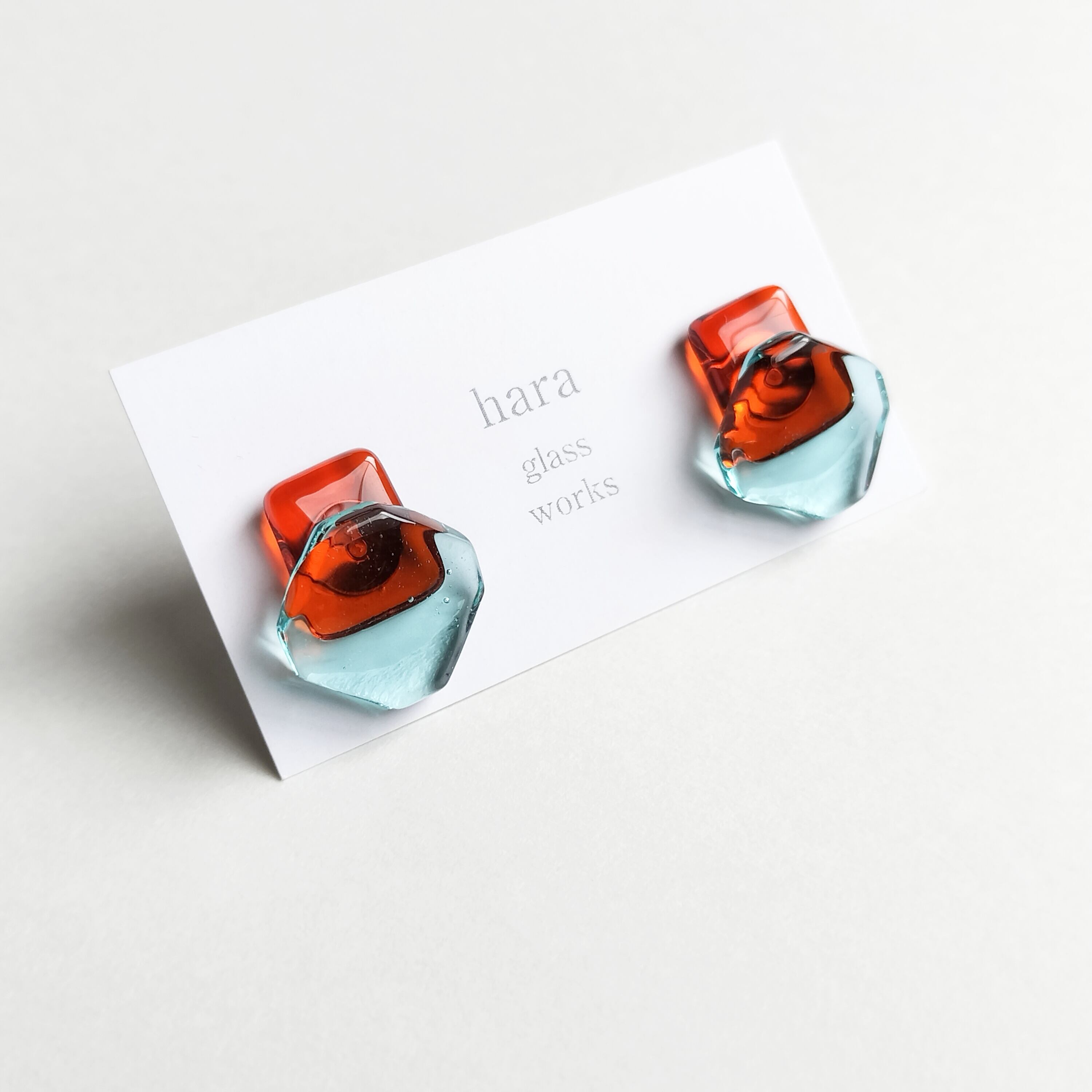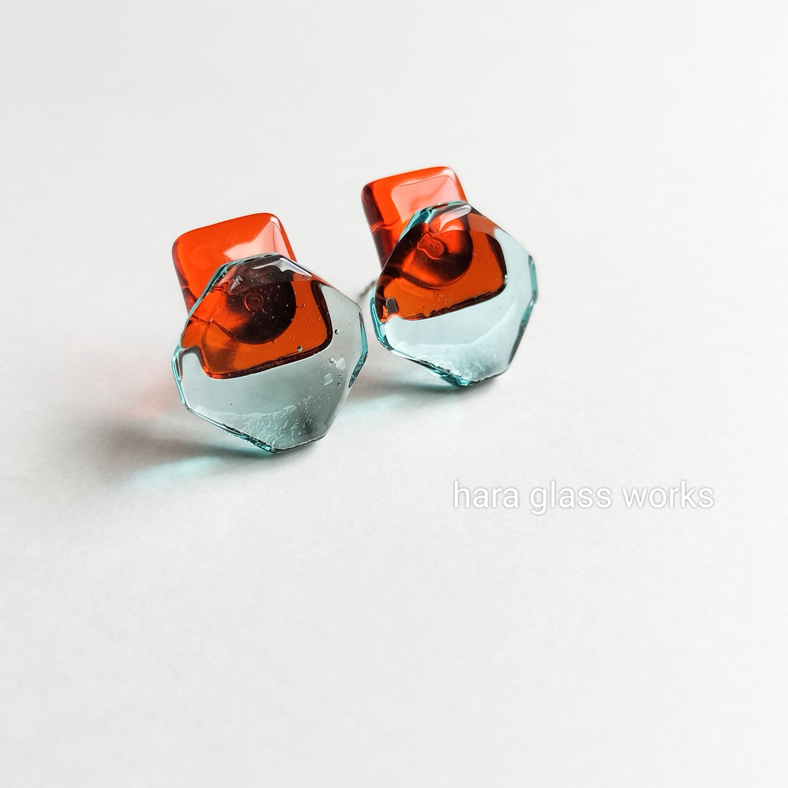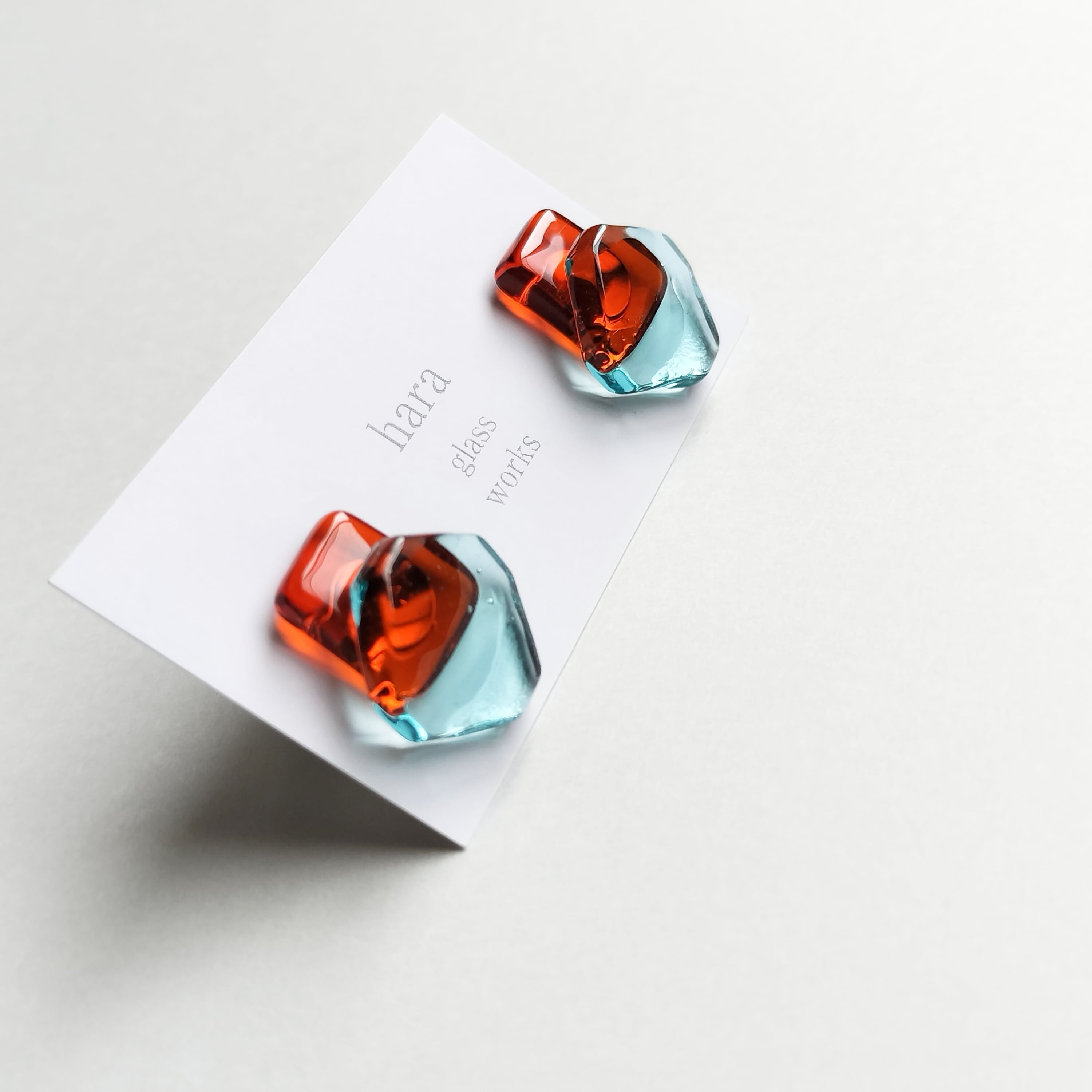 ○□ガラスピアス ティントブルー&オレンジ アレルギー対応ピアス