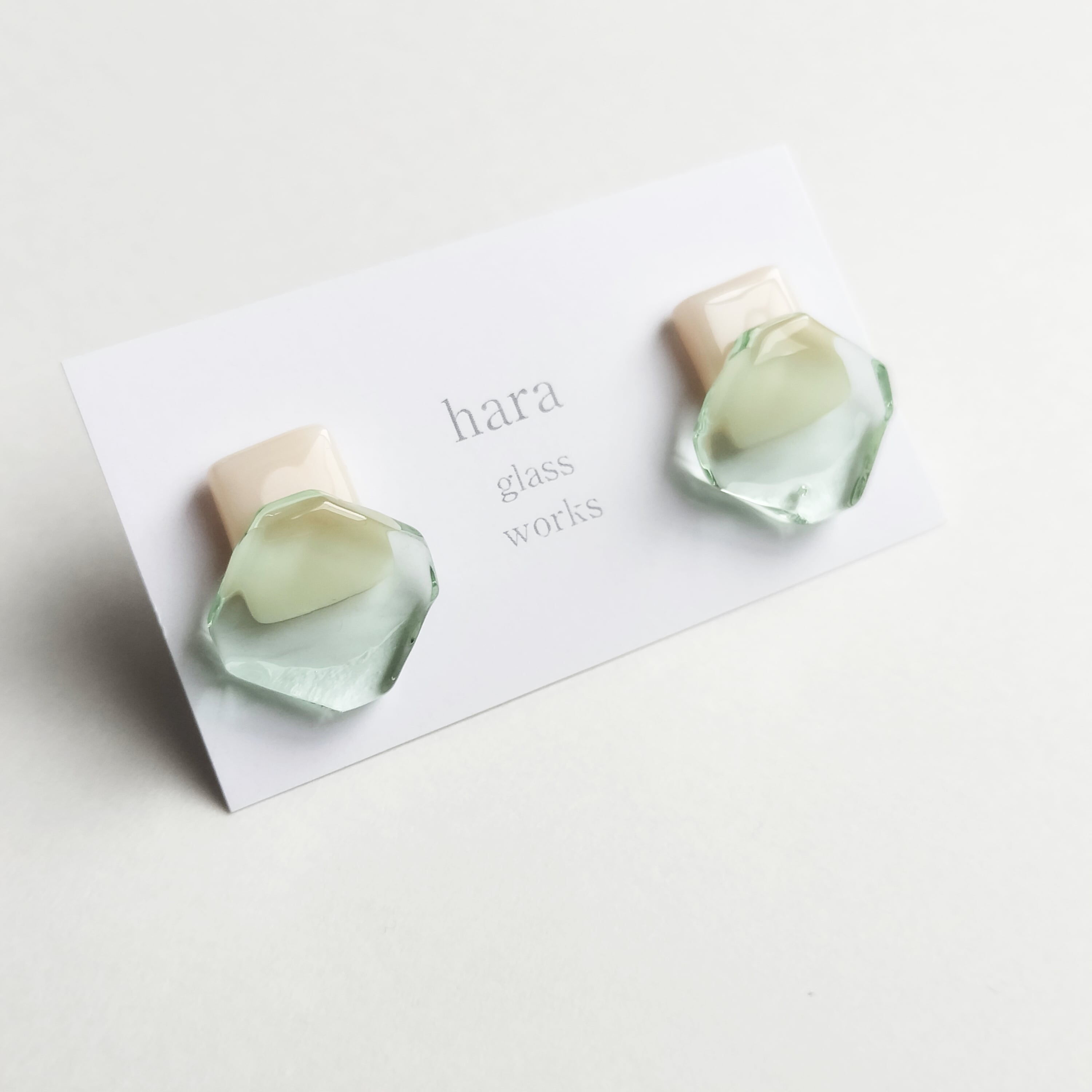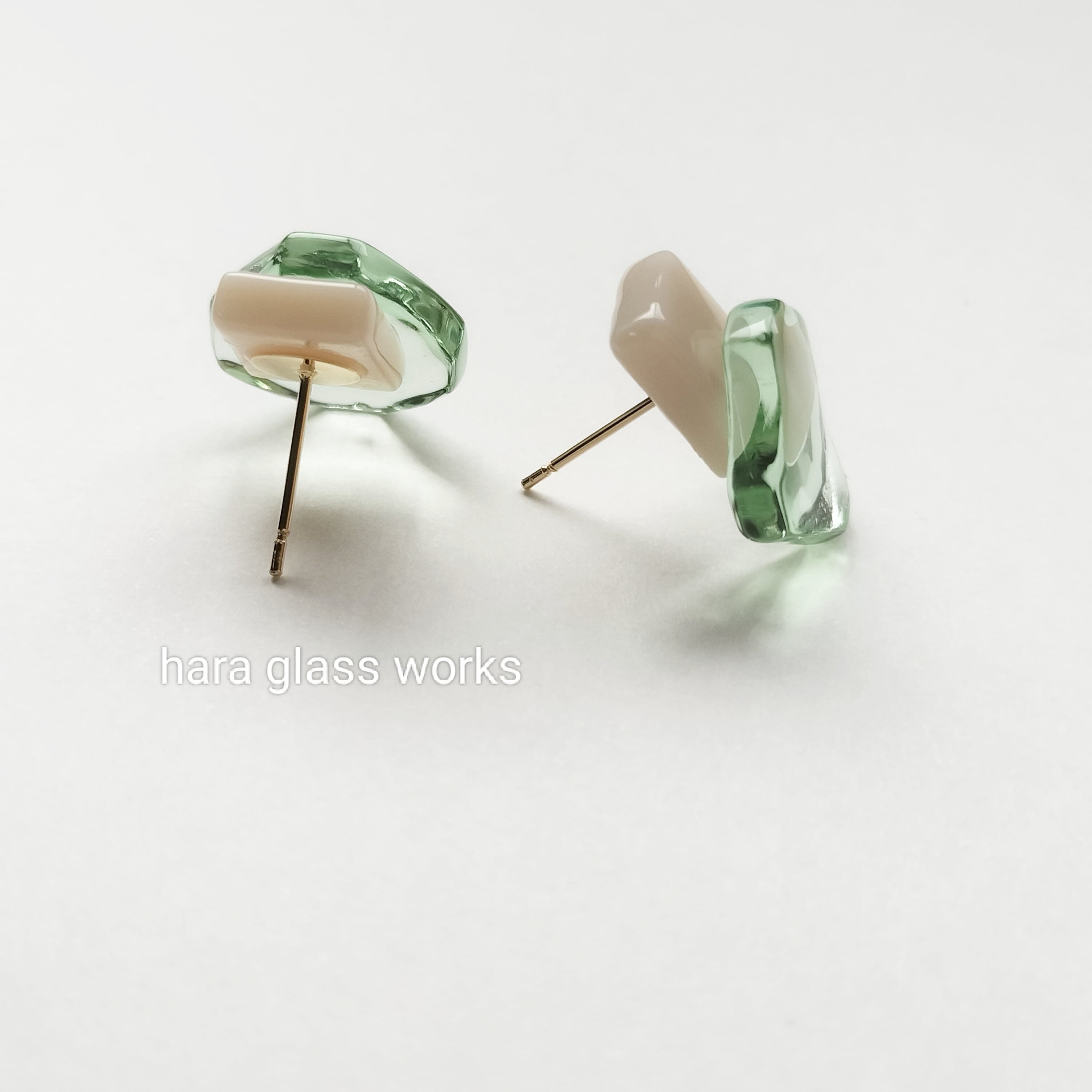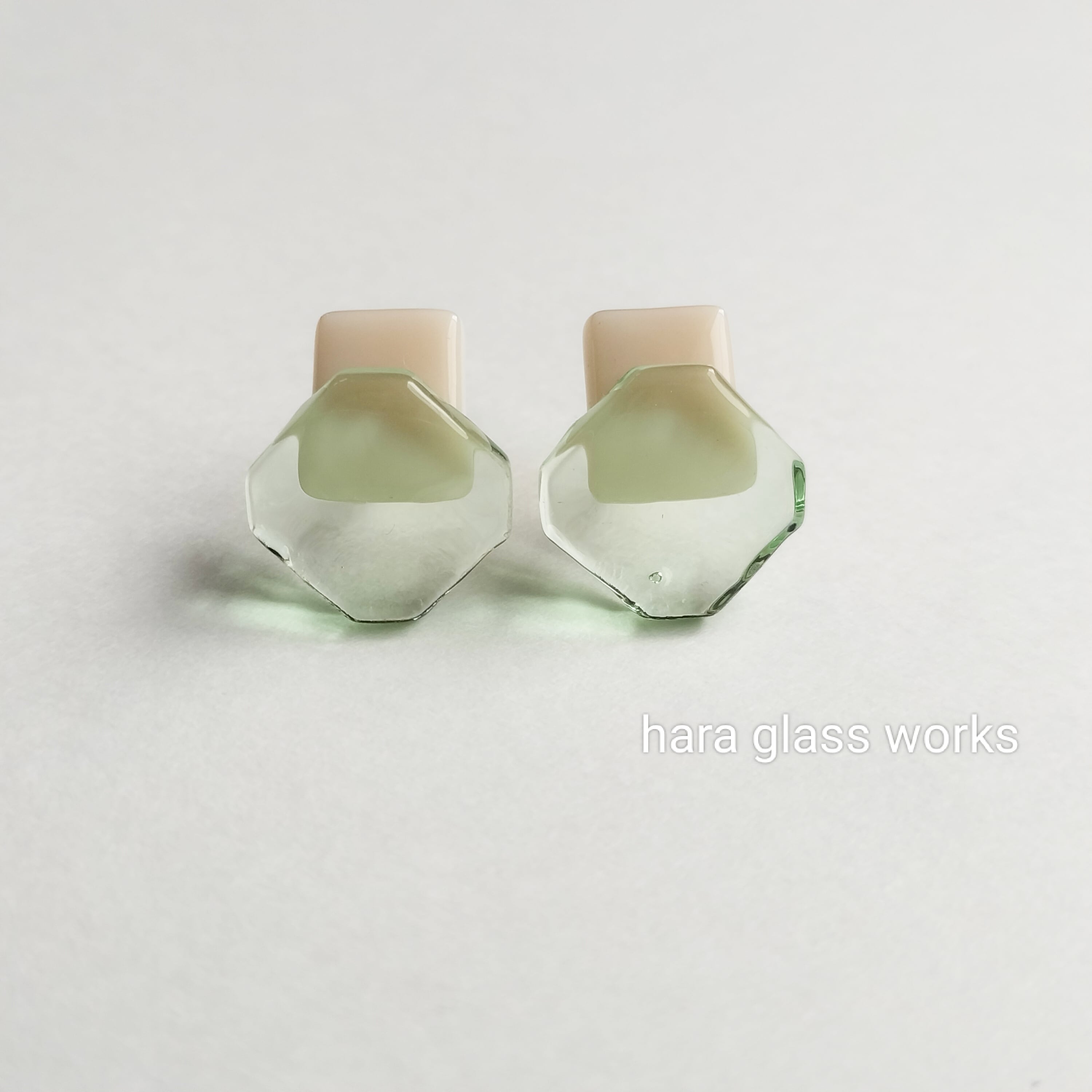 ○□ガラスピアス マジパン&ティントグリーン アレルギー対応ピアスアレルギー対応ピアス