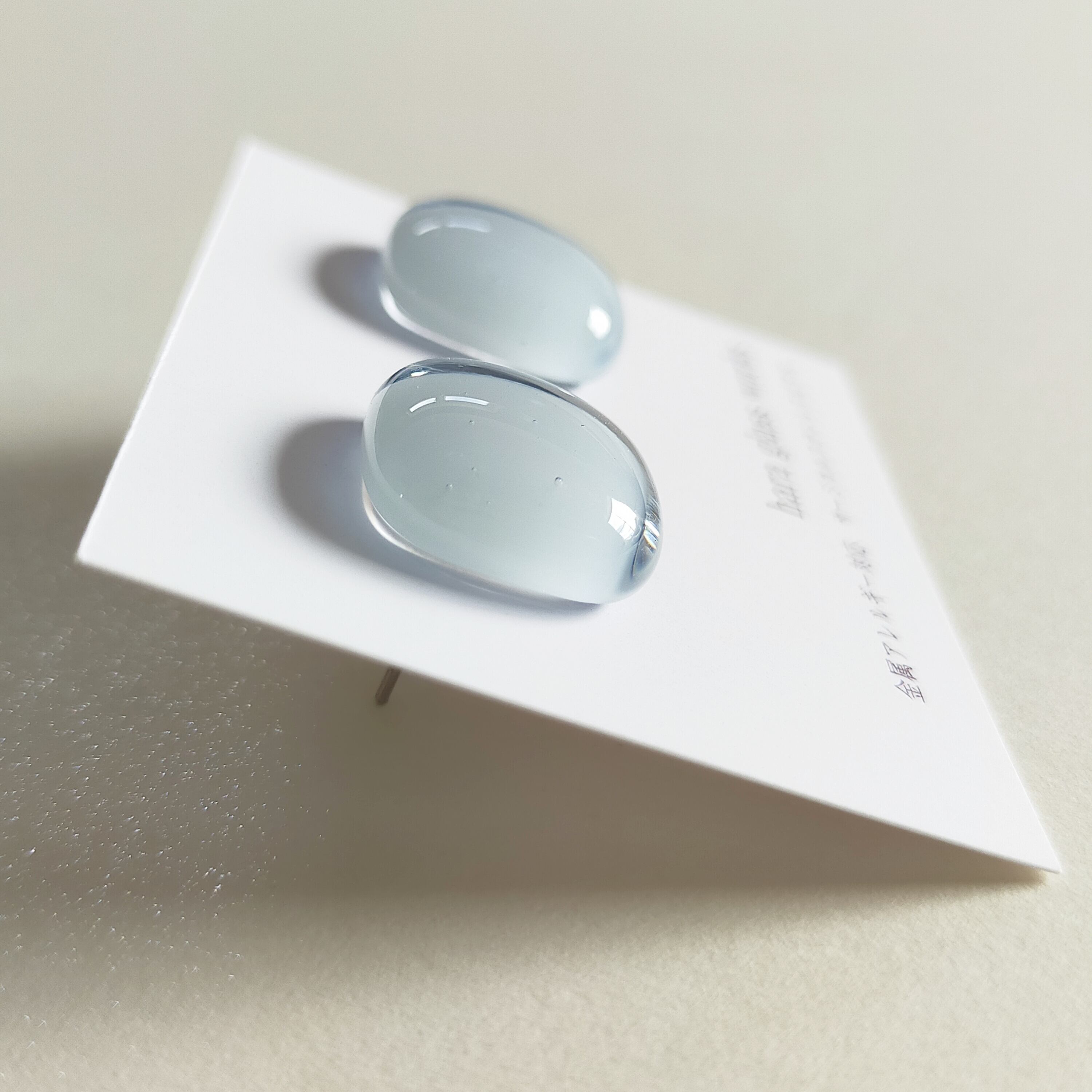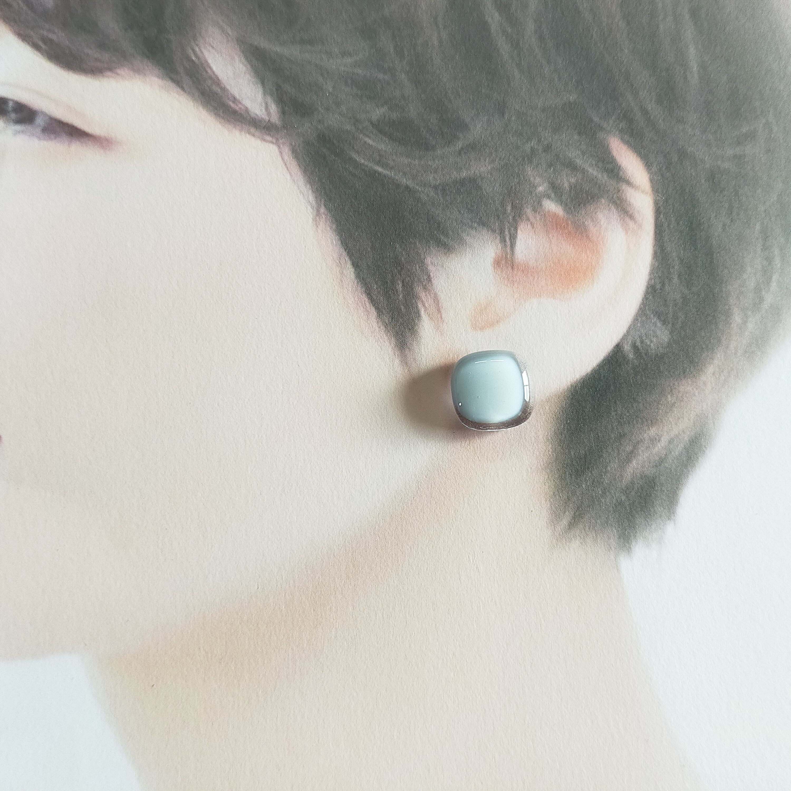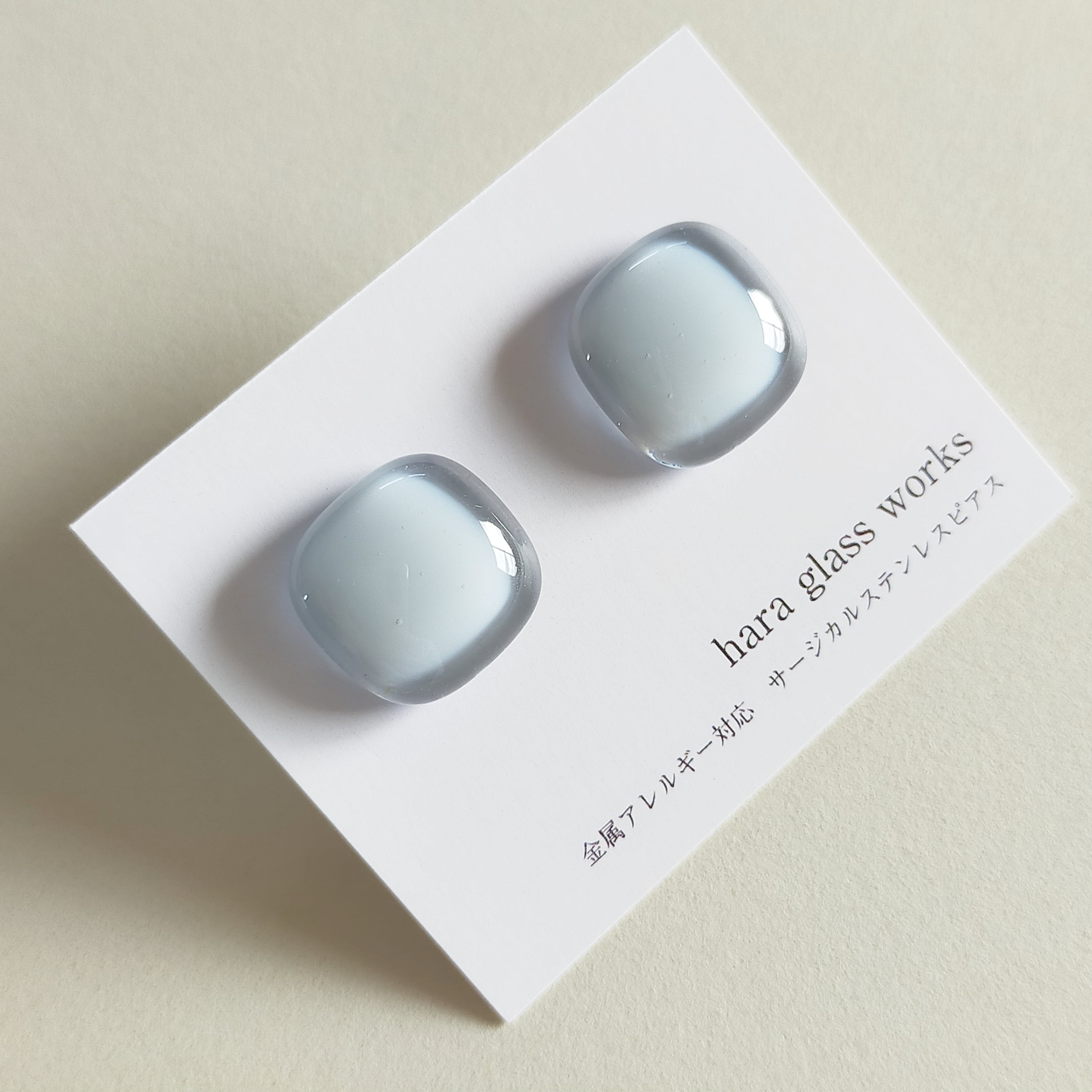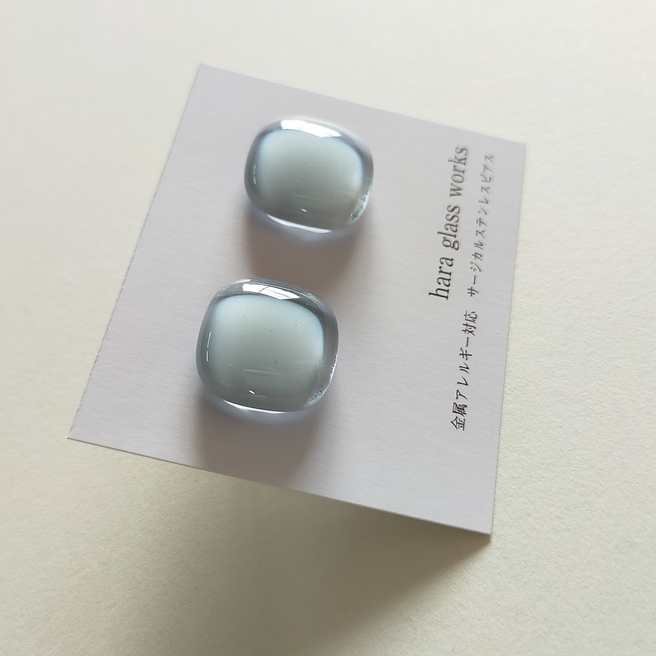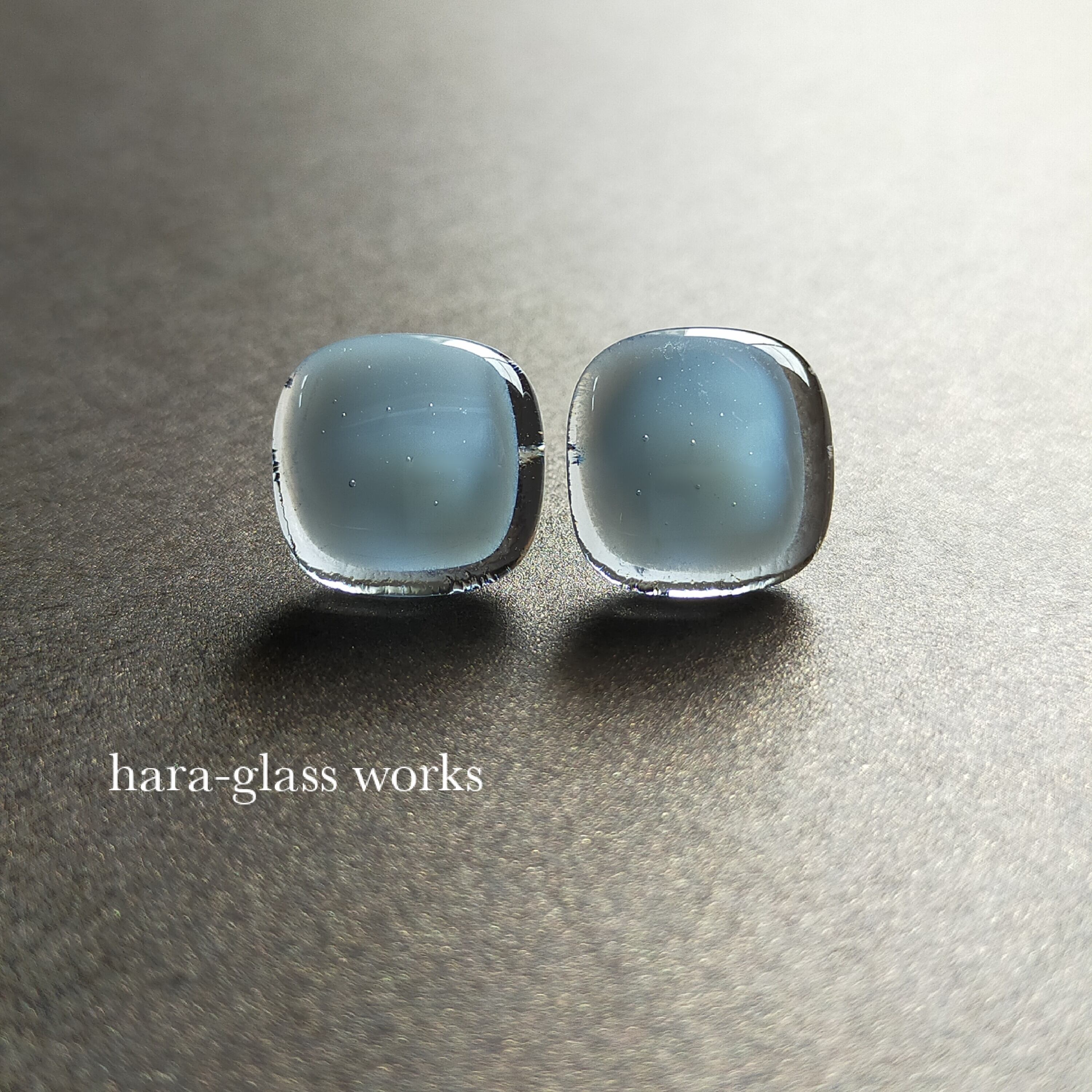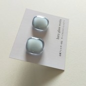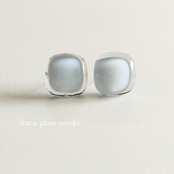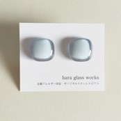 ふんわりスクエアのガラスアクセサリー ペールトーン ティントネイビー アレルギー対応ピアス