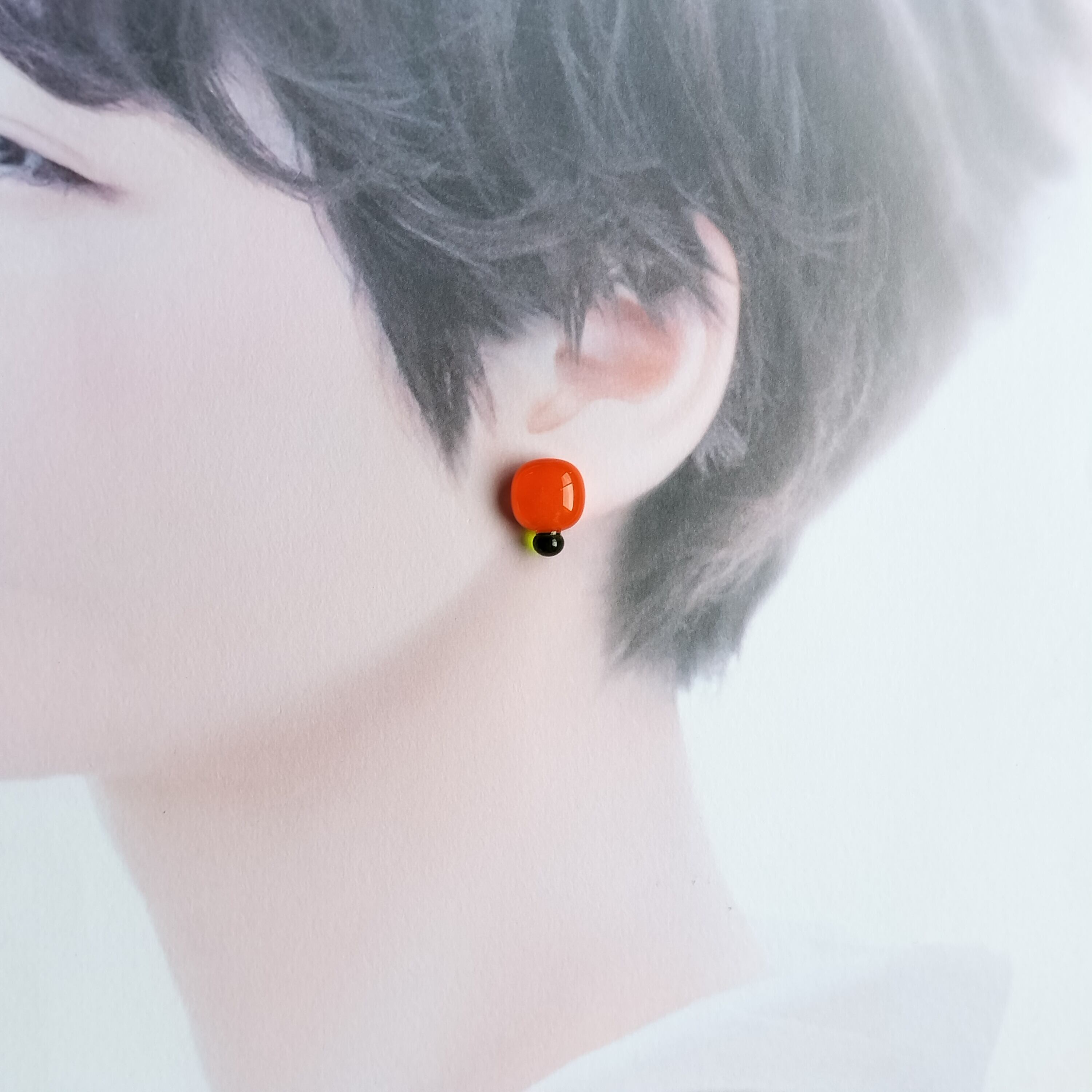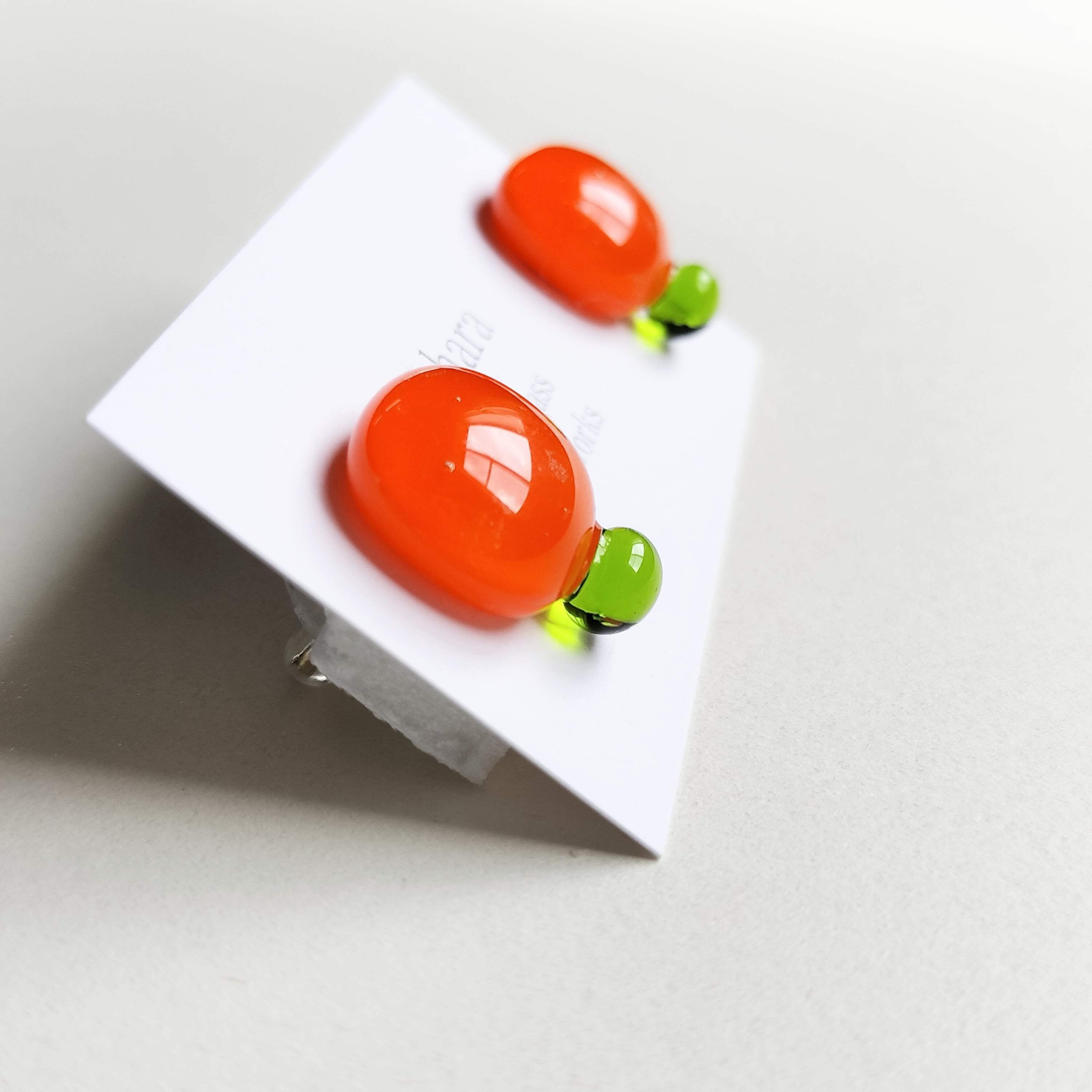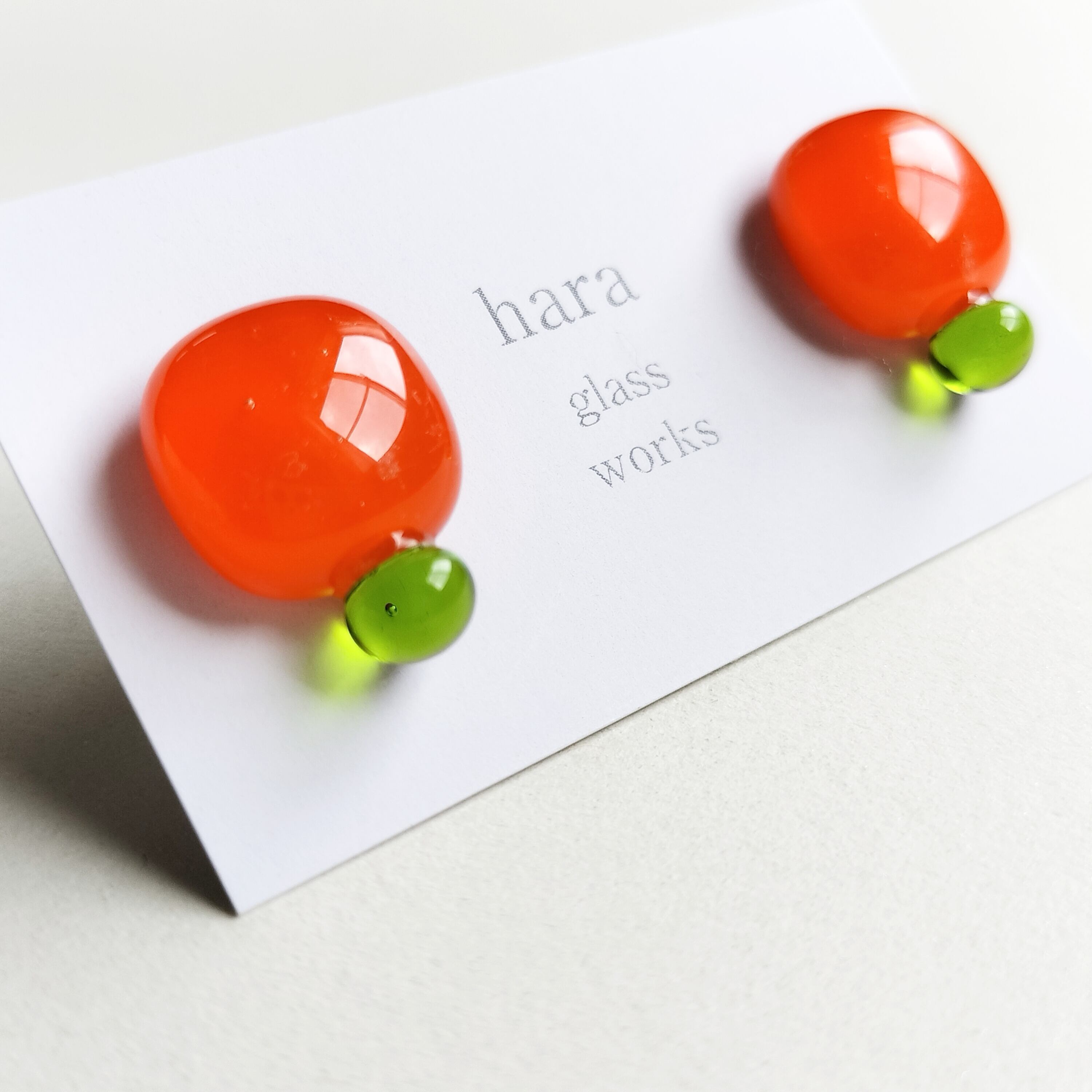 ガラスの2粒ピアス オレンジ&透明グリーン アレルギー対応ピアス